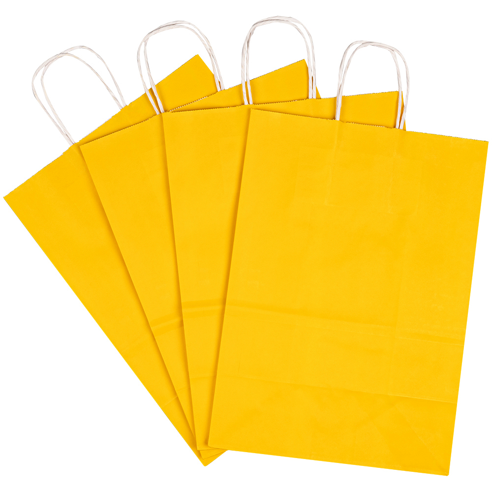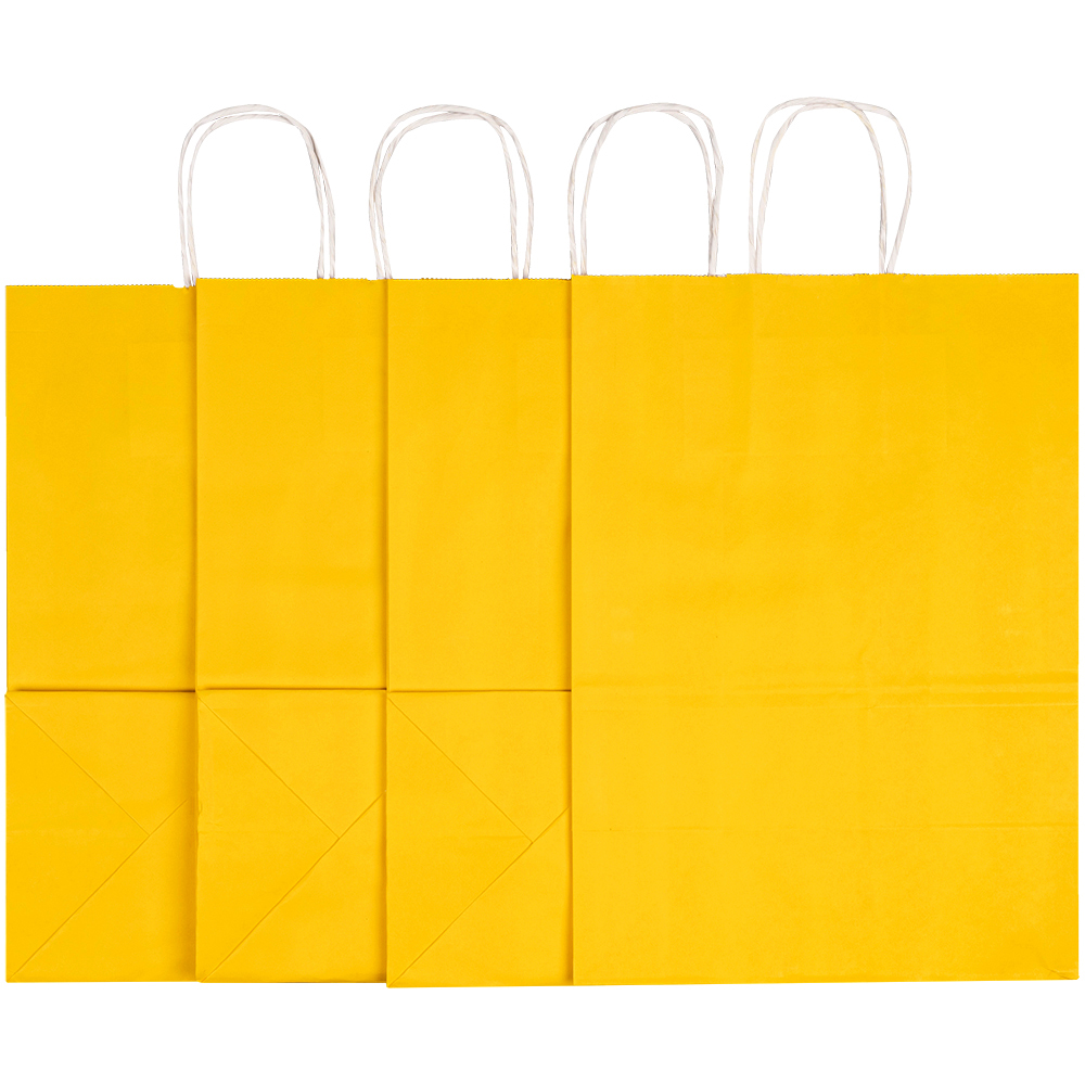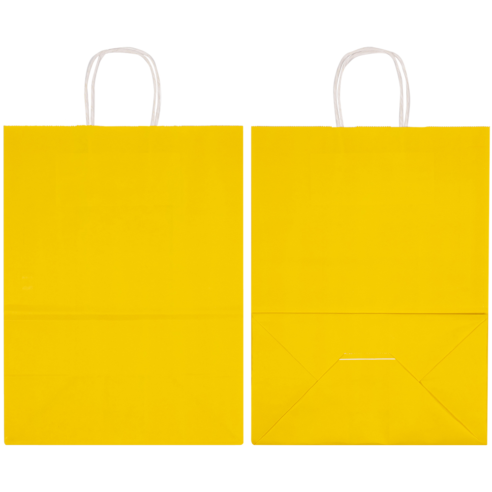 Пакеты с крученой ручкой используются для упаковки, переноски подарков. Отличаются ярким жёлтым цветом.