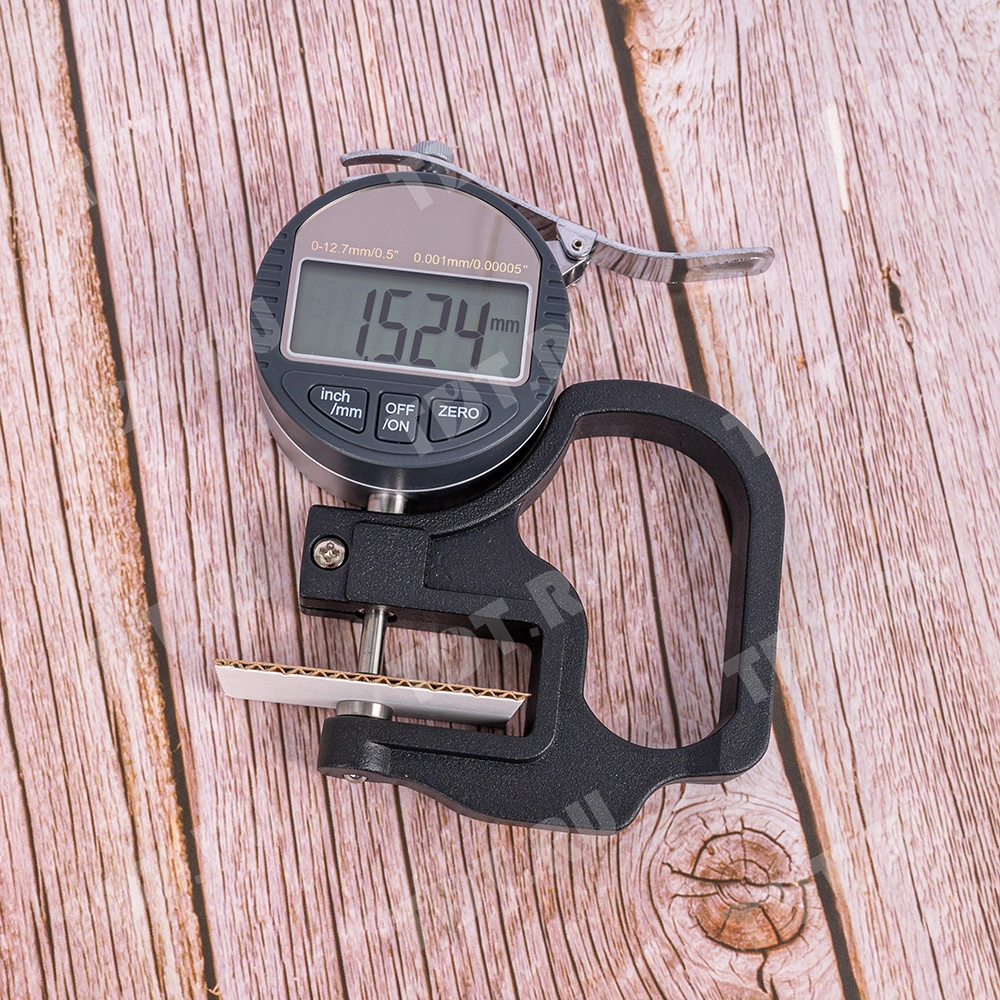 Трехслойный лист микрогофрокартона, бело-бурого цвета, марки T-11 Е, длиной 1200 мм, шириной 800 мм, толщиной 1.4-1.8 мм, площадью 0.96 м², направление волны вдоль стороны 1200 мм. Для производства листов используется только первичное высококачественное сырье. Производится в России.