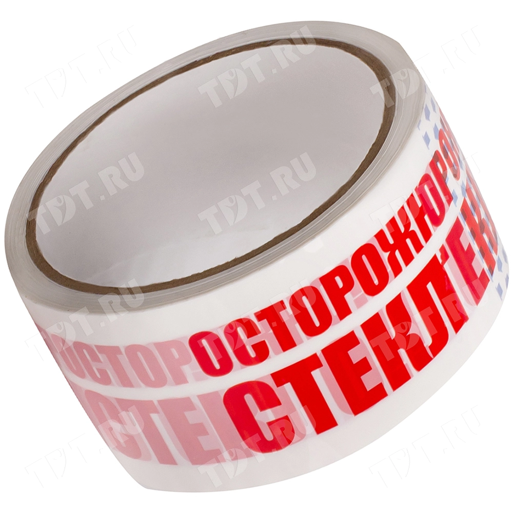 Намотка клейкой ленты с красной надписью «Осторожно стекло» составляет 66 метров.