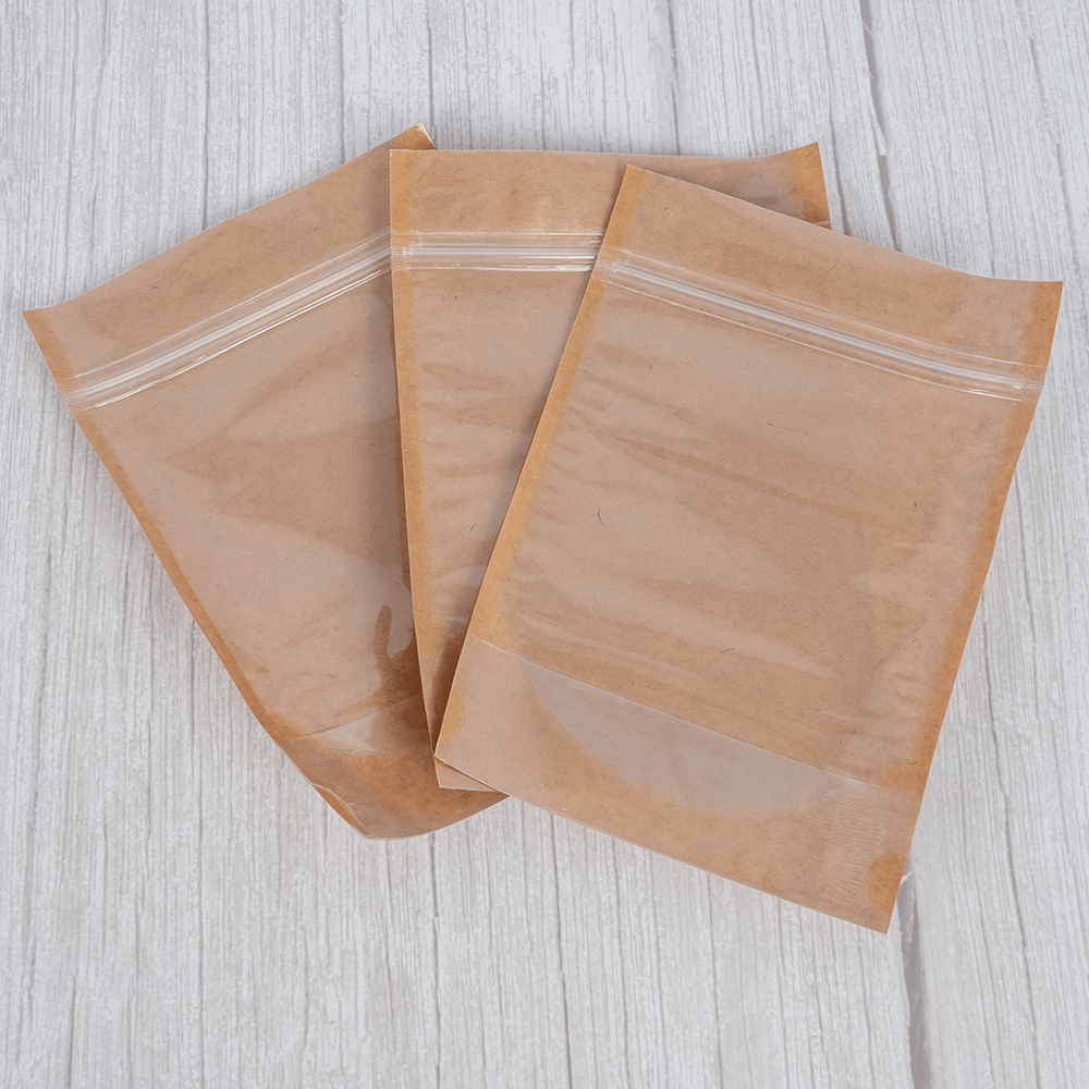 Крафт дой-пак с zip lock и окошком, 13*15+3.5 см, 100 шт.