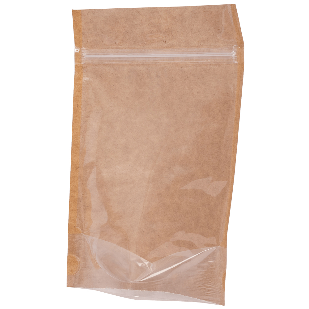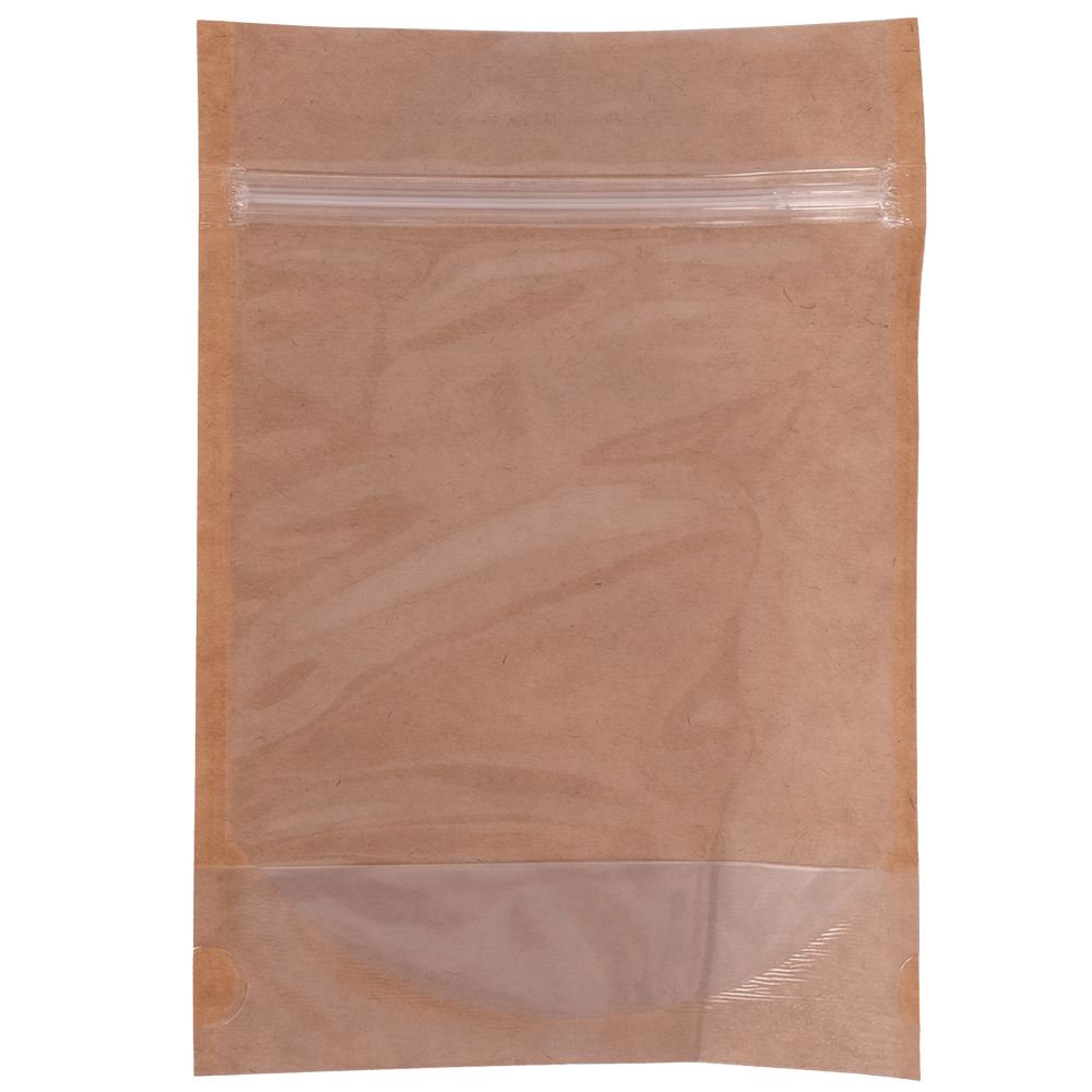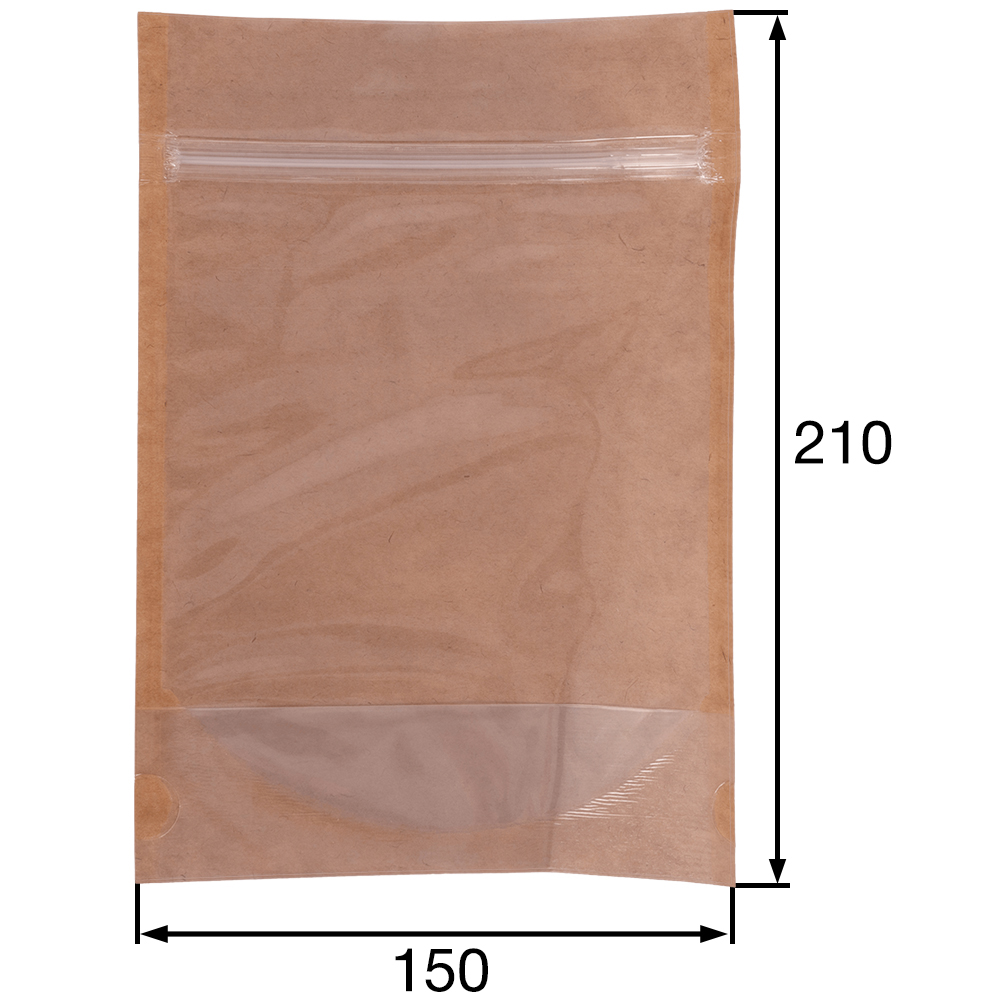 Крафт дой-пак с zip lock и окошком, 15*17+4 см, 100 шт.