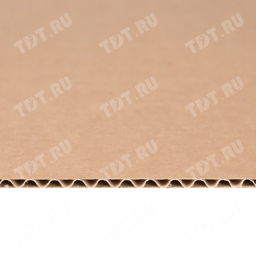 Трехслойный маленький лист гофрокартона формата А3, бурого цвета, марки Т-21 В, длиной 420 мм, шириной 297 мм, толщиной 2.5-3.2 мм, площадью 0.125 м². Производится в России.
