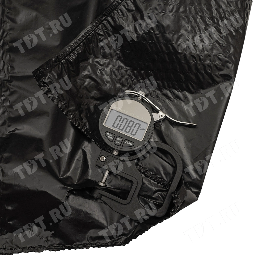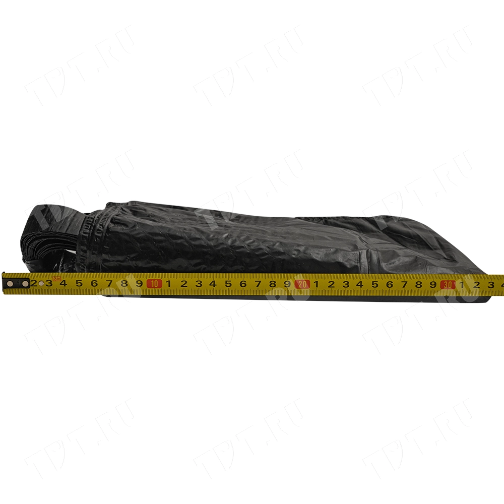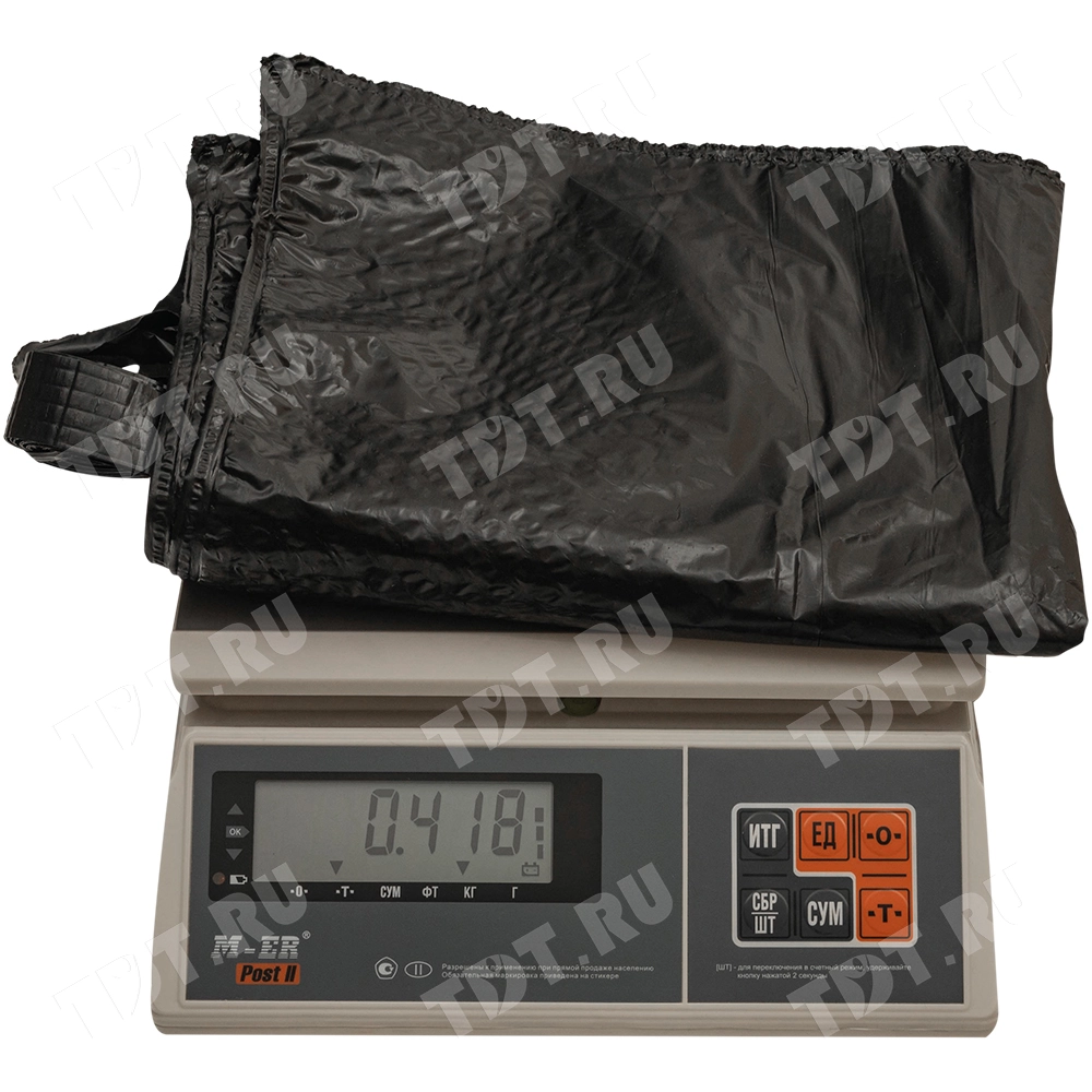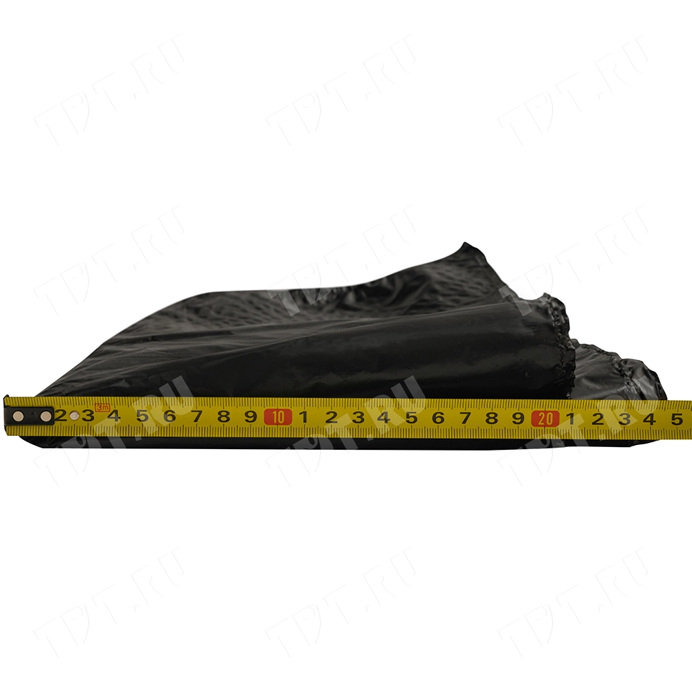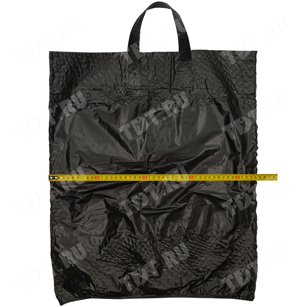 Чёрные полиэтиленовые пакеты ПВД с петлевой ручкой («Орловская» сумка), длиной 50 см, шириной 45 см, толщиной 80 мкм, в упаковке 10 штук. Материал – полиэтилен высокого давления. Производятся в России.
