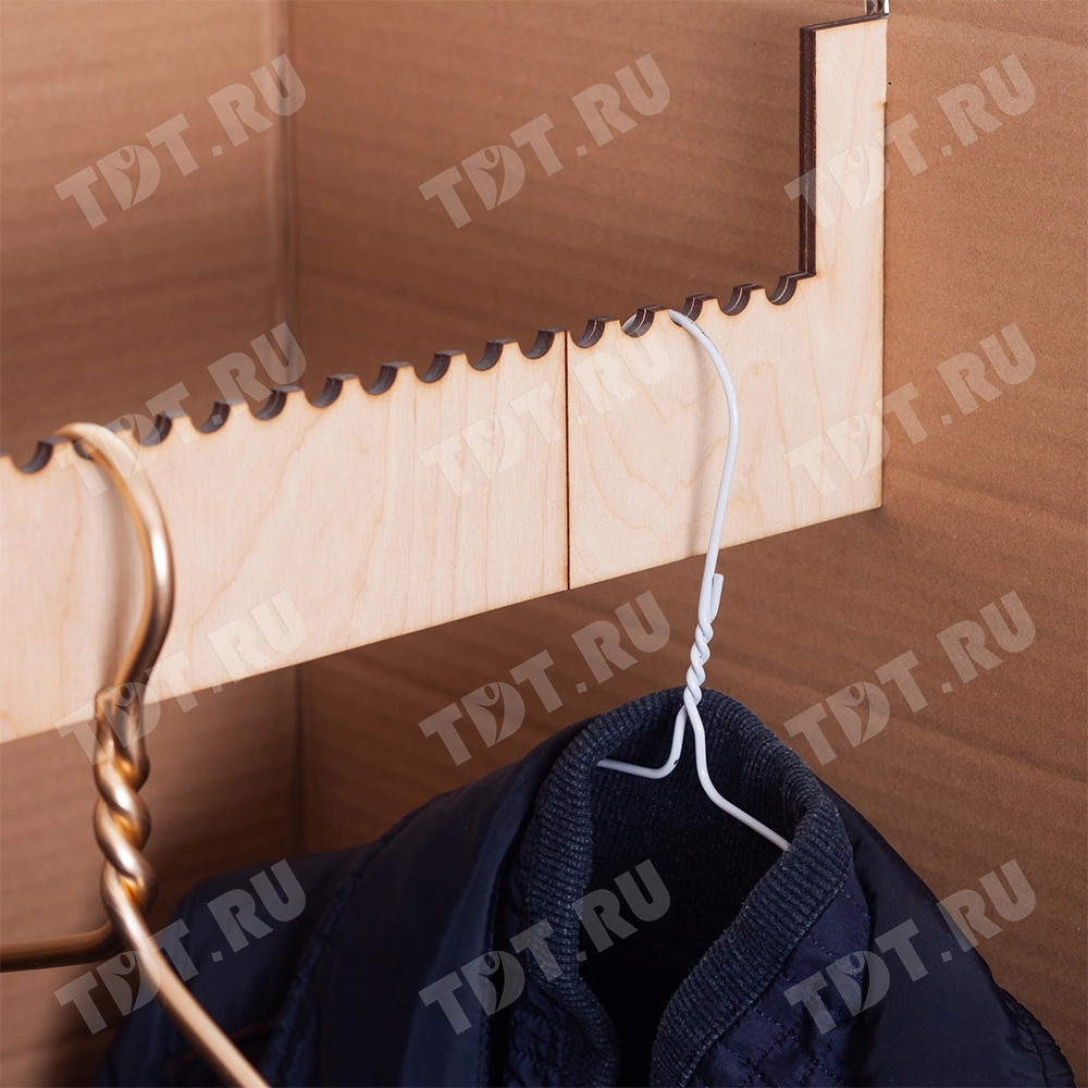 Перекладина для вешалок изготовлена из фанеры.