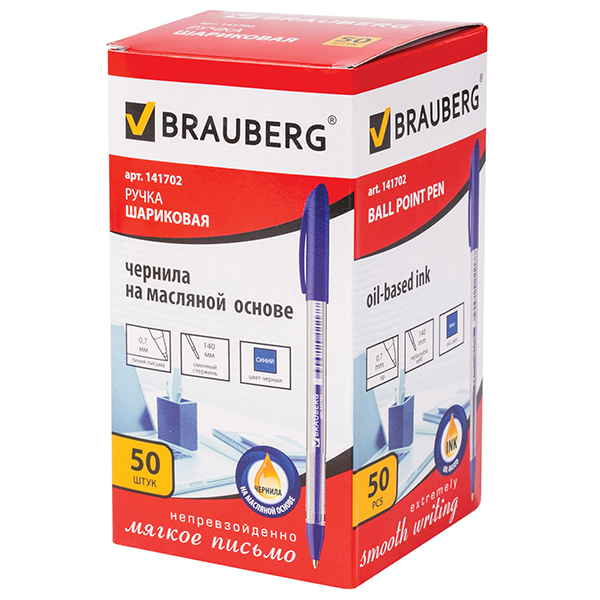 Шариковые ручки BRAUBERG Rite-Oil синего цвета, код производителя 141702, со специальными масляными чернилами ультрапониженной вязкости и надежным пишущим узлом обеспечивают непревзойденно мягкое и комфортное письмо. Ручка скользит по бумаге без каких-либо усилий. Стержень снабжен евронаконечником. Производятся в Индии.