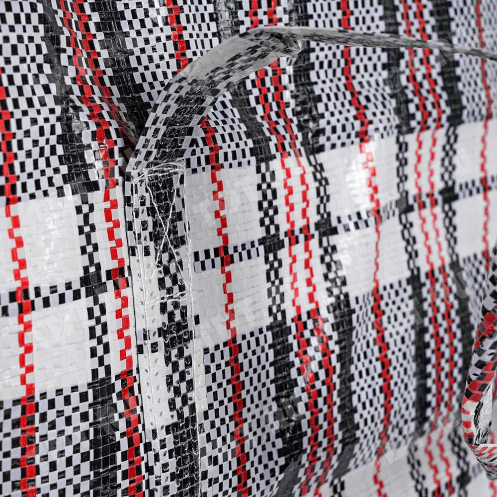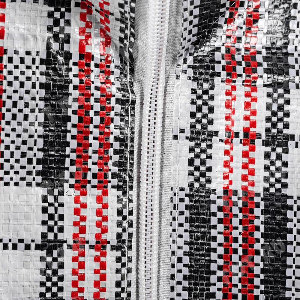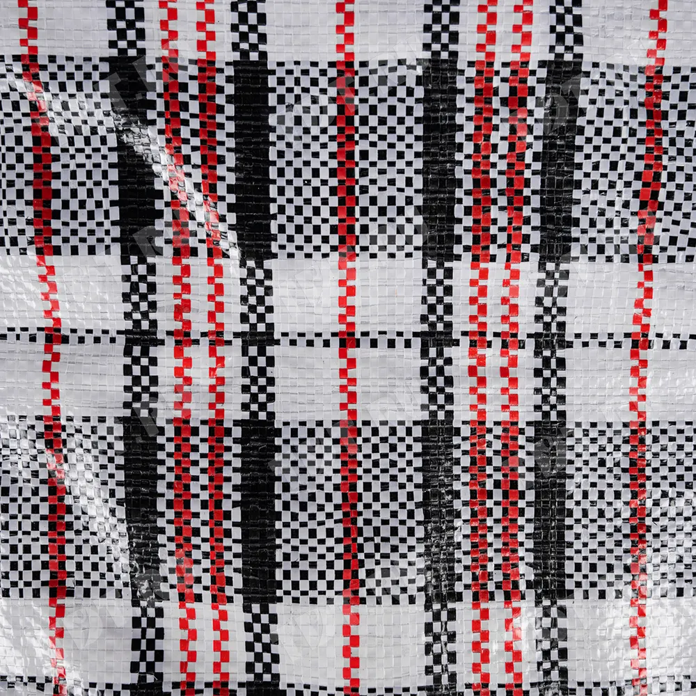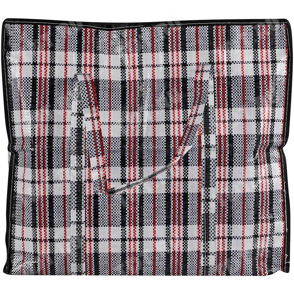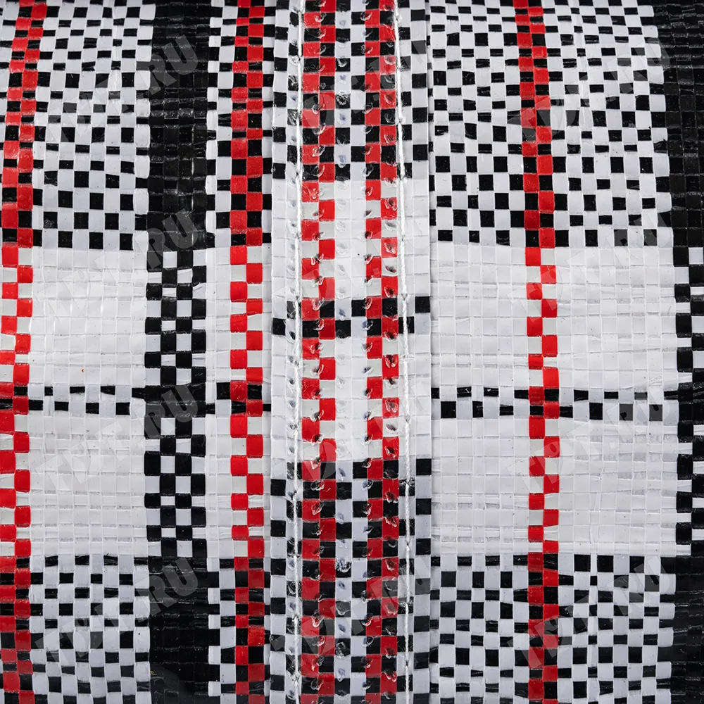 Большая сумка однослойная хозяйственная длиной 70 см, шириной 30 см, высотой 50 см, объемом 105 л, чёрно-красная. Материал полипропилен. Имеет прострочку по периметру. Занимает мало места в сложенном виде. Производится в Китае.