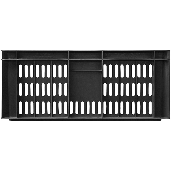 Пластиковый ящик черного цвета с двумя ручками для хранения и транспортировки колбасной и мясной продукции, овощей, фруктов длиной 600 мм, шириной 400 мм, высотой 250 мм. Кратны размерам пластиковых поддонов: 800*600 мм, 1200*800 мм, 1200*1000 мм. Изготовлен из полиэтилена. Производится в России.