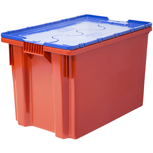 Пластиковый ящик с синей крышкой, красный, 600*400*400 мм