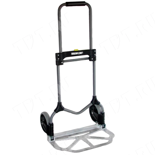 Компактная складная тележка MAGNA Cart MC2, двухколесная, ручная, грузоподъемностью 90 кг, размером площадки 27.9*48.9, диаметром колес 18 см, весом 5 кг. Ручка выдвигается до 98 см. Материал – сталь и алюминий. Производится в Китае.