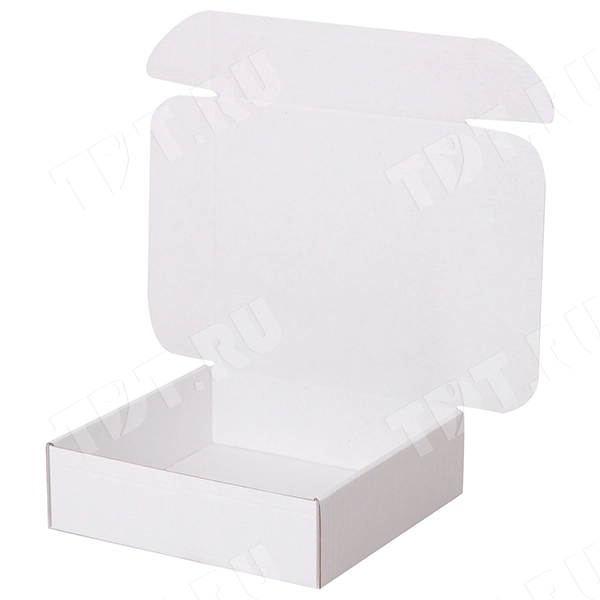 Короб КС-426 МГФ, серии КС-400, белый, длиной 185 мм, шириной 185 мм и высотой 60 мм. Изготовлен из микрогофрокартона Т-23. Полезный объём — 2 л.