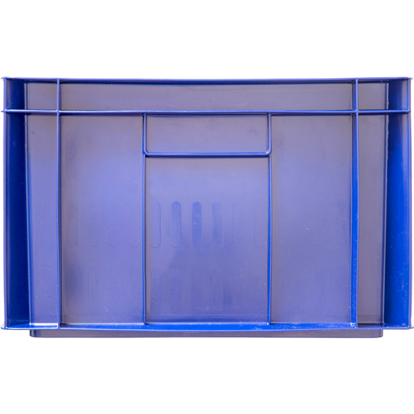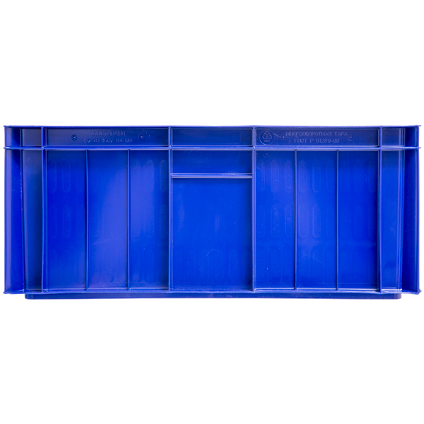Прямоугольный пластиковый ящик синего цвета для хранения и транспортировки мяса, колбас и мясных изделий длиной 600 мм, шириной 400 мм, высотой 250 мм. Кратны размерам пластиковых поддонов: 800*600 мм, 1200*800 мм, 1200*1000 мм. Изготовлен из полиэтилена. Производится в России.
