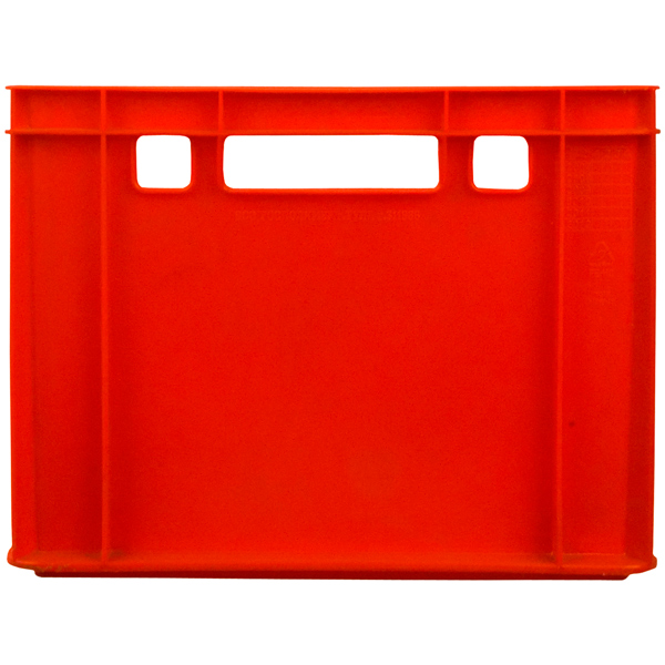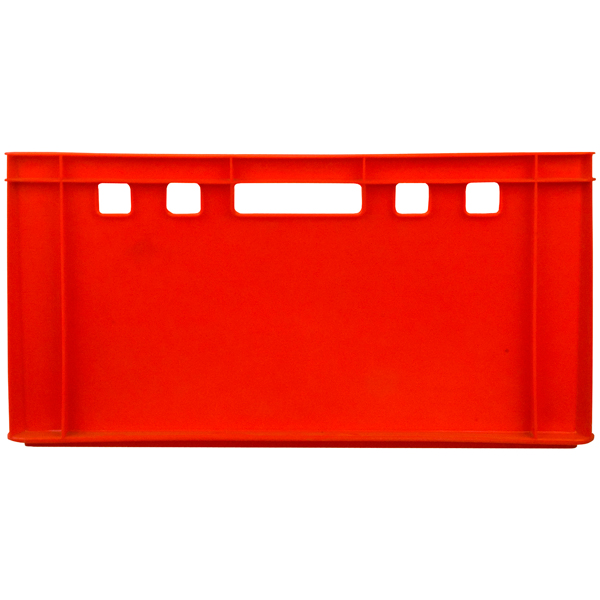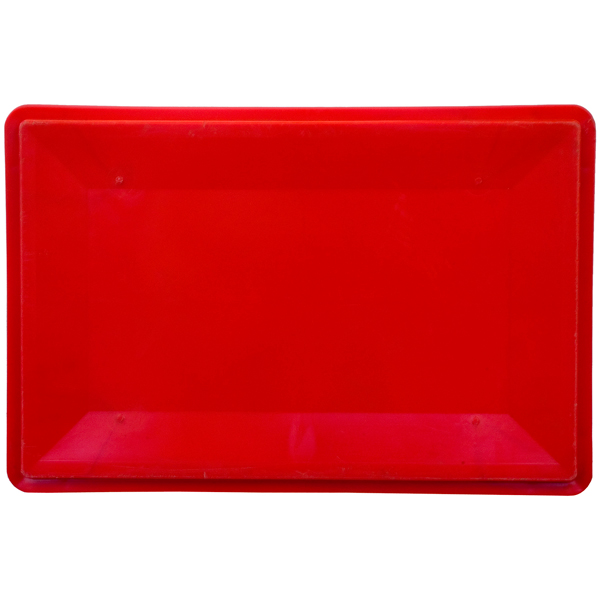 Пластиковый ящик красного цвета с четырьмя ручками для хранения и транспортировки мяса, колбас и мясной продукции длиной 600 мм, шириной 400 мм, высотой 300 мм. Изготовлен из полиэтилена. Производится в России.