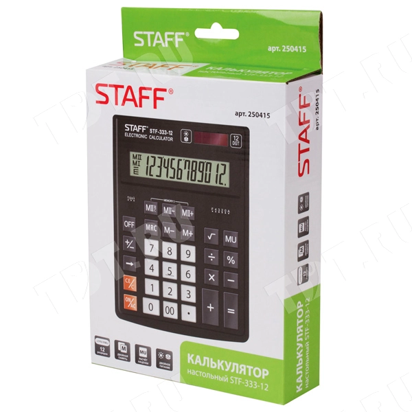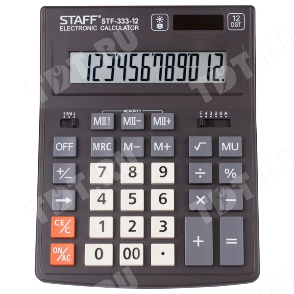 У калькулятора STAFF Plus STF-333 на экране одновременно может быть показано до 12 цифр.