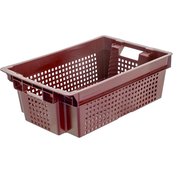 Область применения:Применяется для хранения и перевозки продукции. Перфорированные стенки и дно позволяют циркулировать воздуху, товару оставаться свежим. Выступы на дне помогают ровно штабелировать ящики друг на друга. Пустые ящики вкладываются друг в друга. Используются: на рынках, складах хранения, в магазинах и супермаркетах.