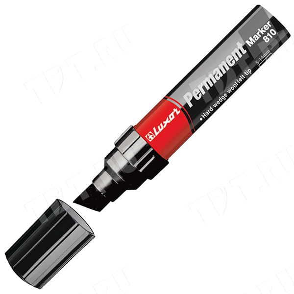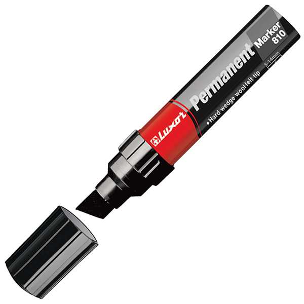 Маркер перманентный Luxor 810 спиртовой, толщиной пера 5-14 мм, черного цвета, скошенный наконечник. Производится в Индии.