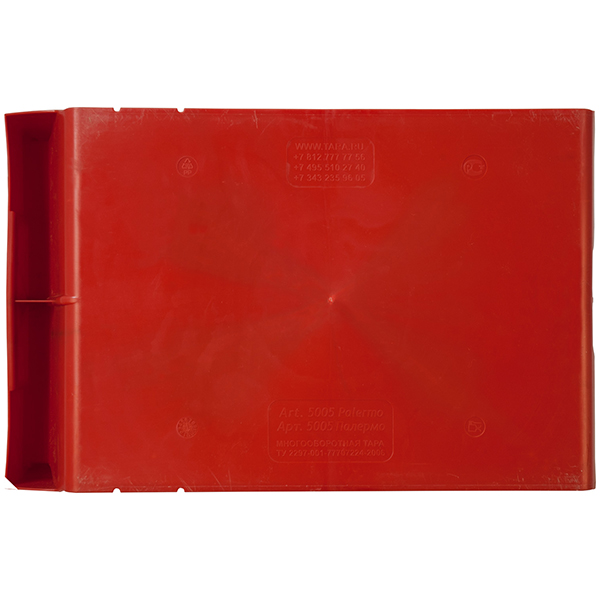 Пластиковый ящик красного цвета Palermo PP для хранения и транспортировки пищевой, фармакологической, автомобильной продукции, мелких деталей, медикаментов, инструментов и иных изделий, длиной 500 мм, шириной 310 мм, высотой 200 мм. Изготовлен из пищевого полипропилена. Производится в России.