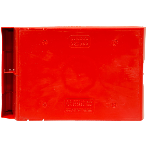 Пластиковый ящик красного цвета Venezia PP для хранения и транспортировки пищевой, фармакологической, автомобильной продукции, мелких деталей, медикаментов, инструментов и иных изделий, длиной 500 мм, шириной 310 мм, высотой 250 мм. Изготовлен из пищевого полипропилена. Производится в России.