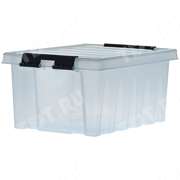 Прозрачный пластиковый ящик для хранения и транспортировки вещей длиной 415 мм, шириной 300 мм, высотой 190 мм. Изготовлен из полипропилена. Производится в России.