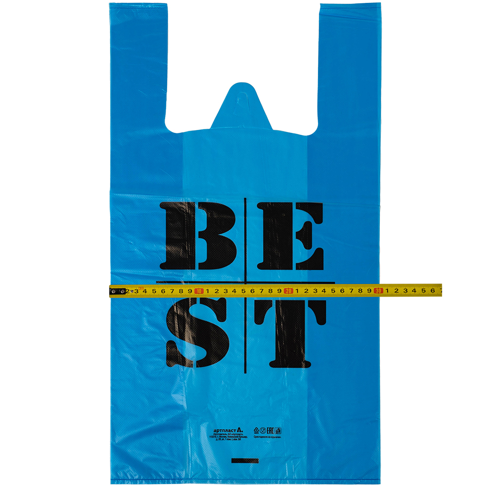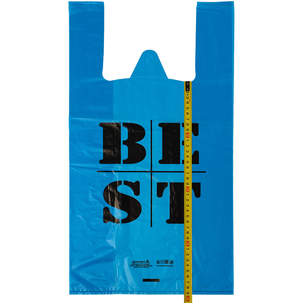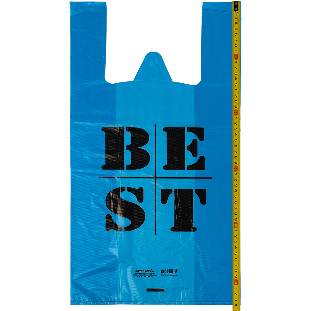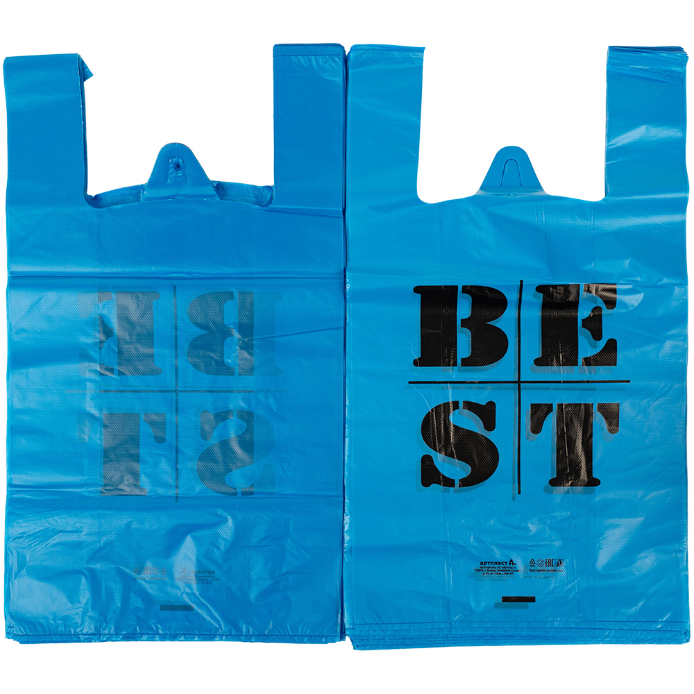 Полиэтиленовые пакеты майка ПНД «Best» синего и зелёного, цвета, длиной 55 см, шириной 31+17 см, толщиной 30 мкм, в упаковке 100 штук. Материал – полиэтилен низкого давления. Выдерживают вес до 50 кг. Производятся в России.