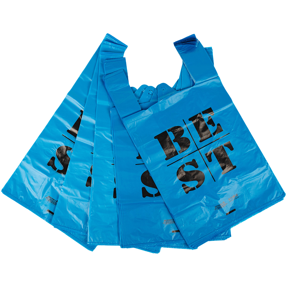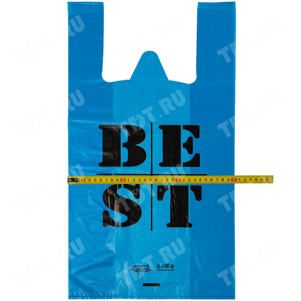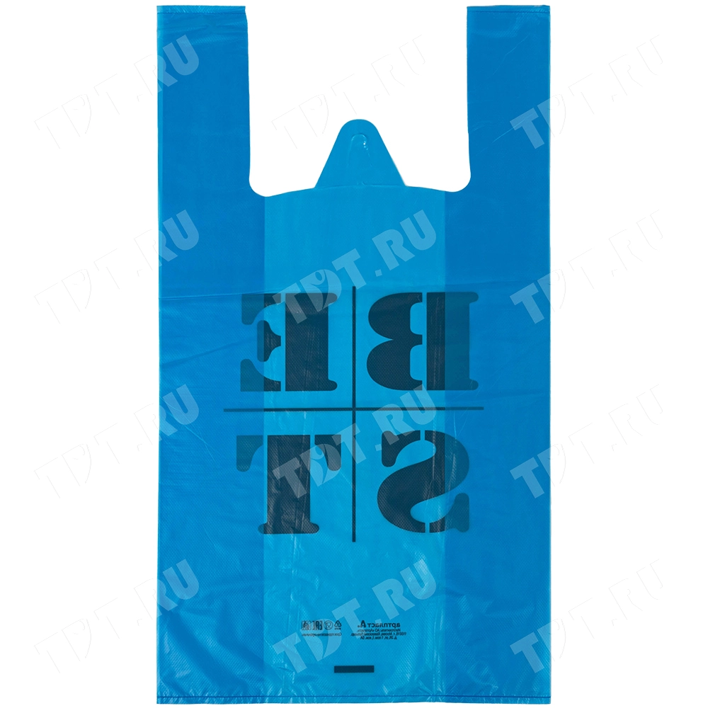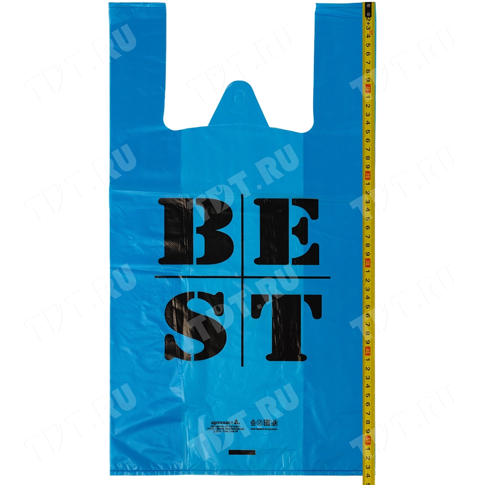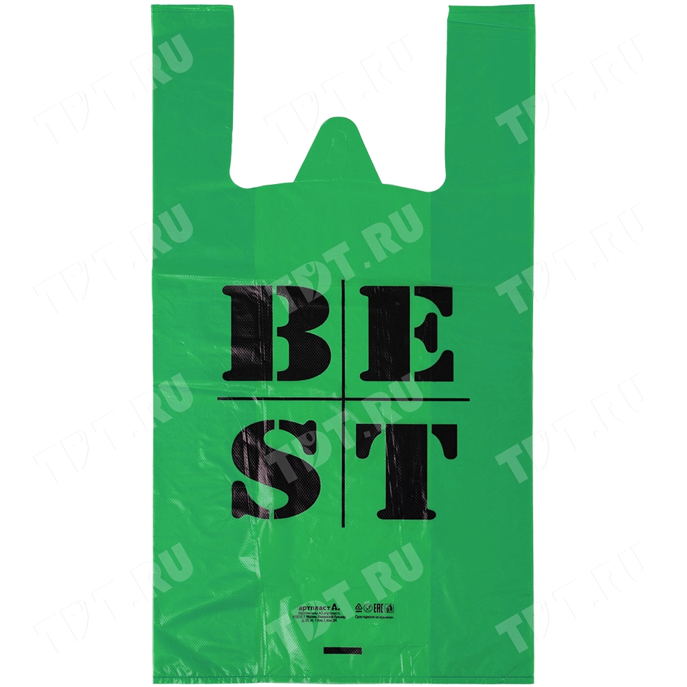 Полиэтиленовые пакеты майка ПНД «Best» синего и зелёного, цвета, длиной 55 см, шириной 31+17 см, толщиной 30 мкм, в упаковке 100 штук. Материал – полиэтилен низкого давления. Выдерживают вес до 50 кг. Производятся в России.