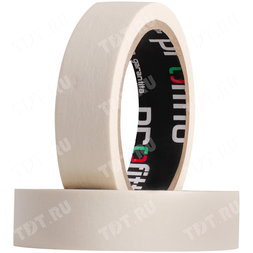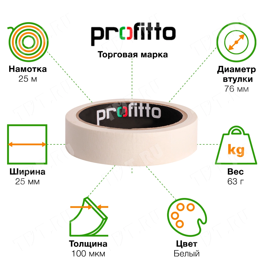 Тонкая малярная лента «Profitto» шириной 25 мм, диаметром втулки 76 мм, намоткой 25 метров.