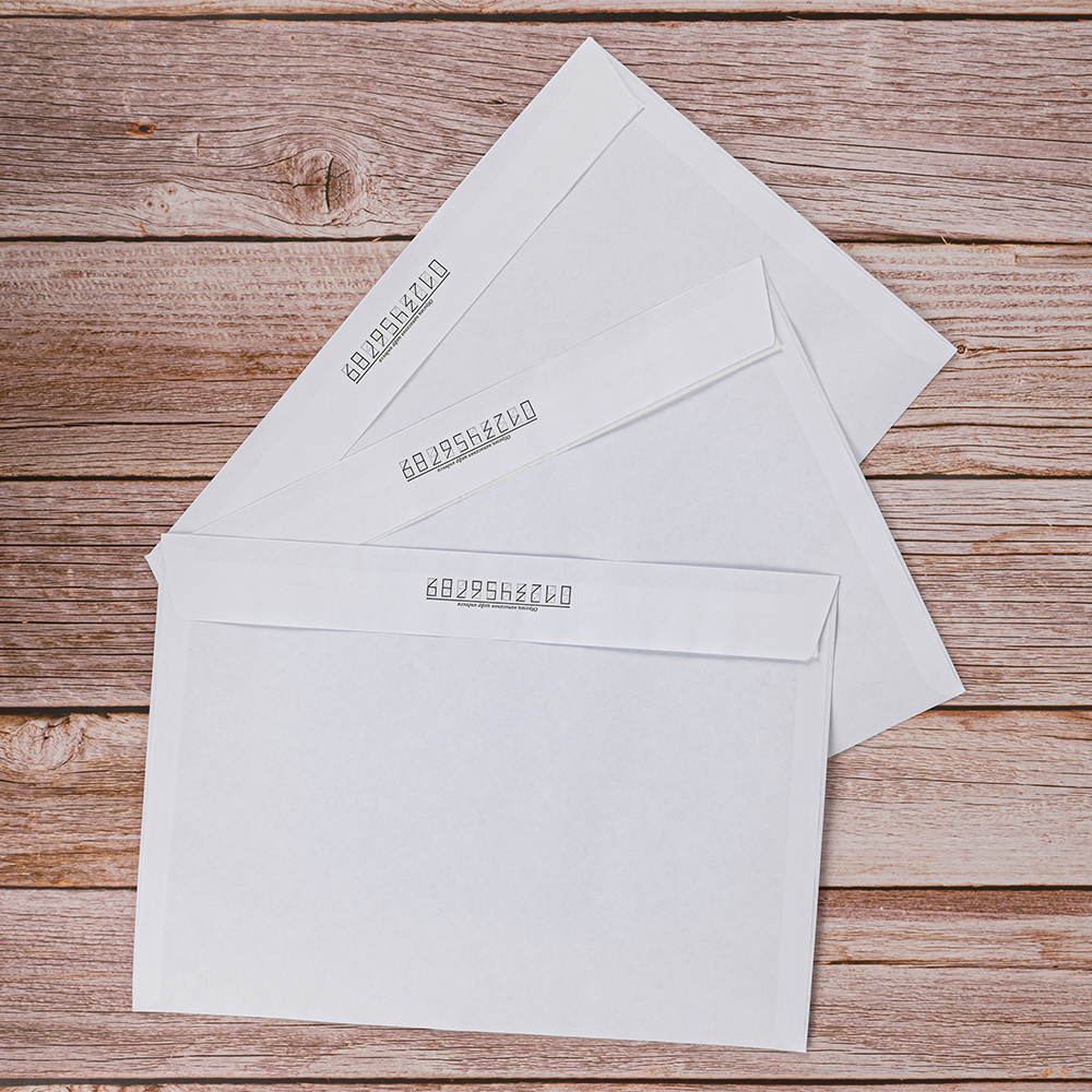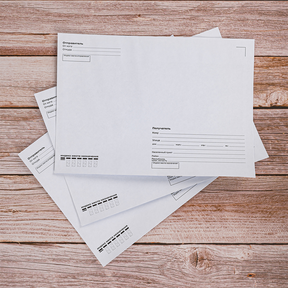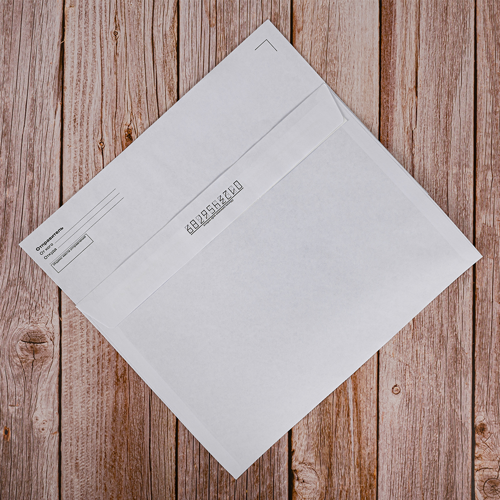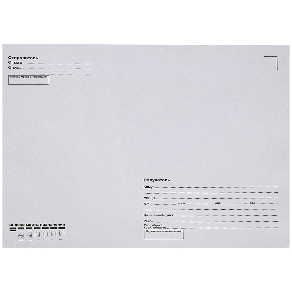 Бумажный почтовый конверт C4 (229*324 мм) с адресной сеткой "Кому-Куда" для отправки уведомлений, корреспонденции, различной документации почтой России.