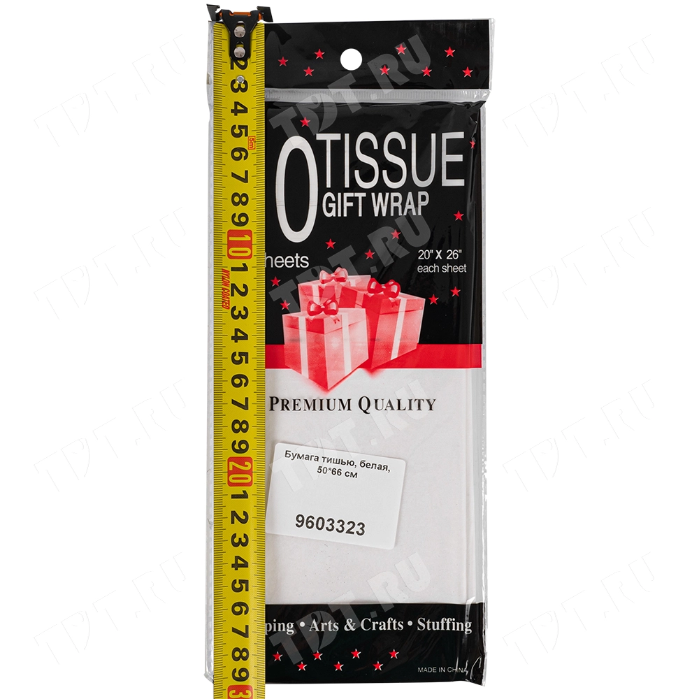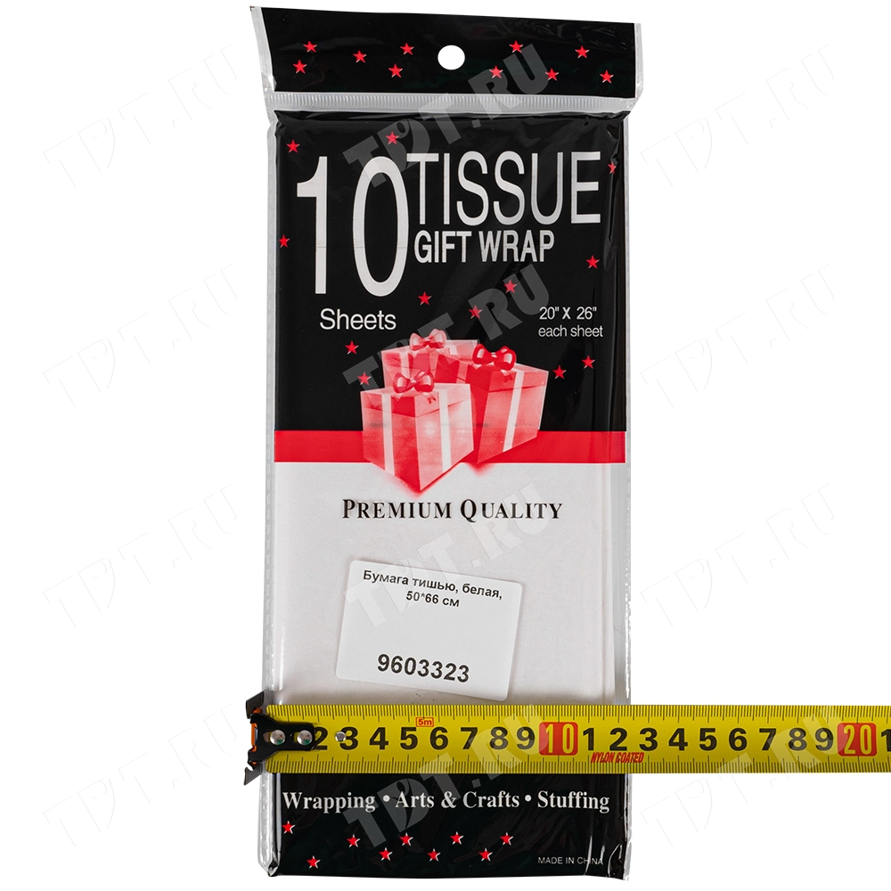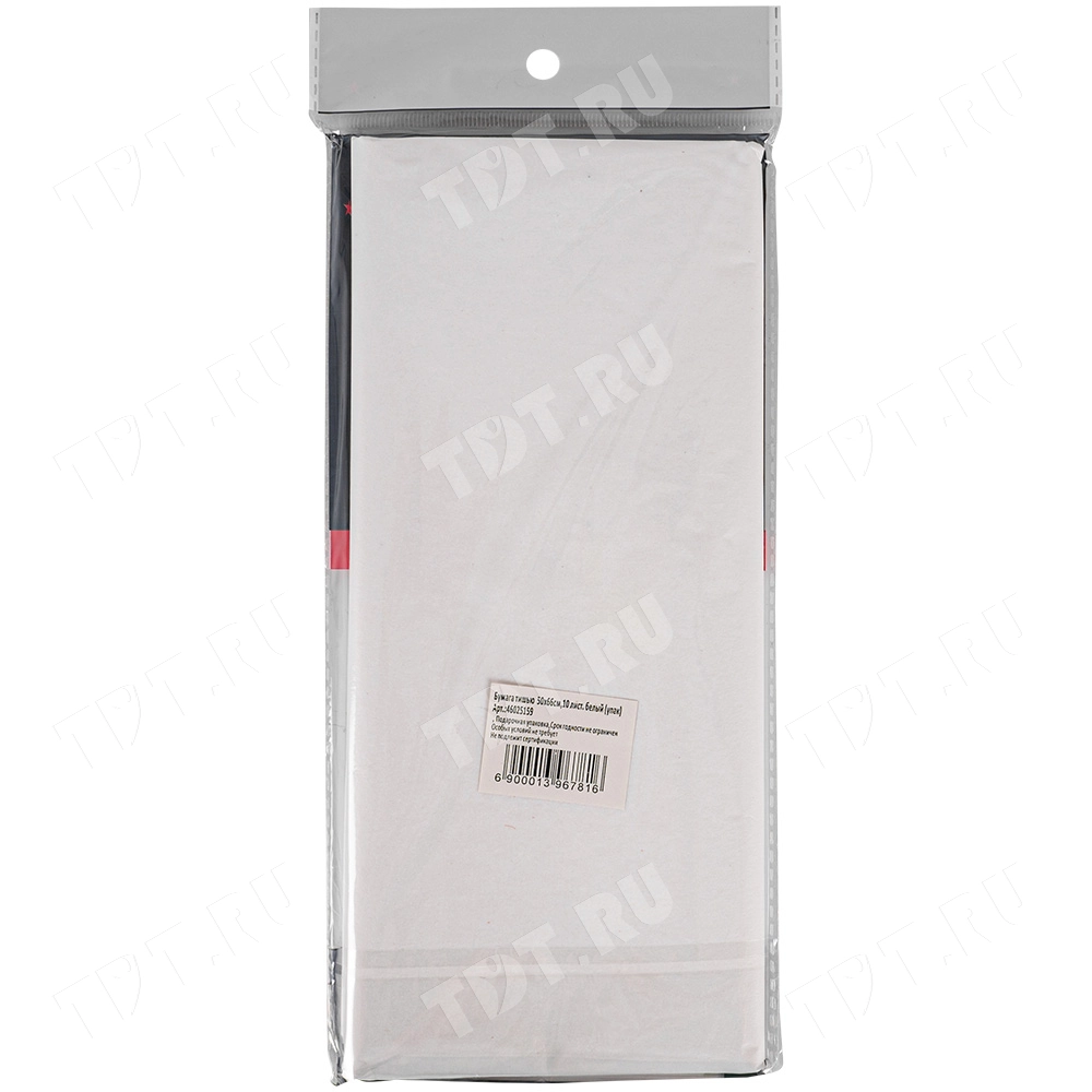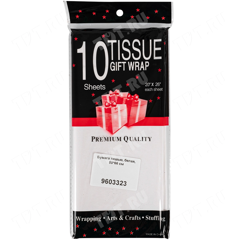 Белая бумага тишью шириной 50 см, длиной 66 см, плотностью 20 г/м² по 10 листов в упаковке. Шероховатая упаковочная бумага для оформления и украшения подарков.