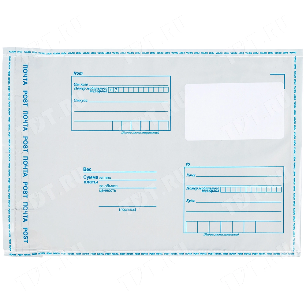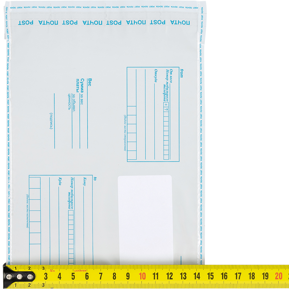 Этот почтовый пакет изготовлен из прочного пятислойного полиэтилена и не просвечивает.