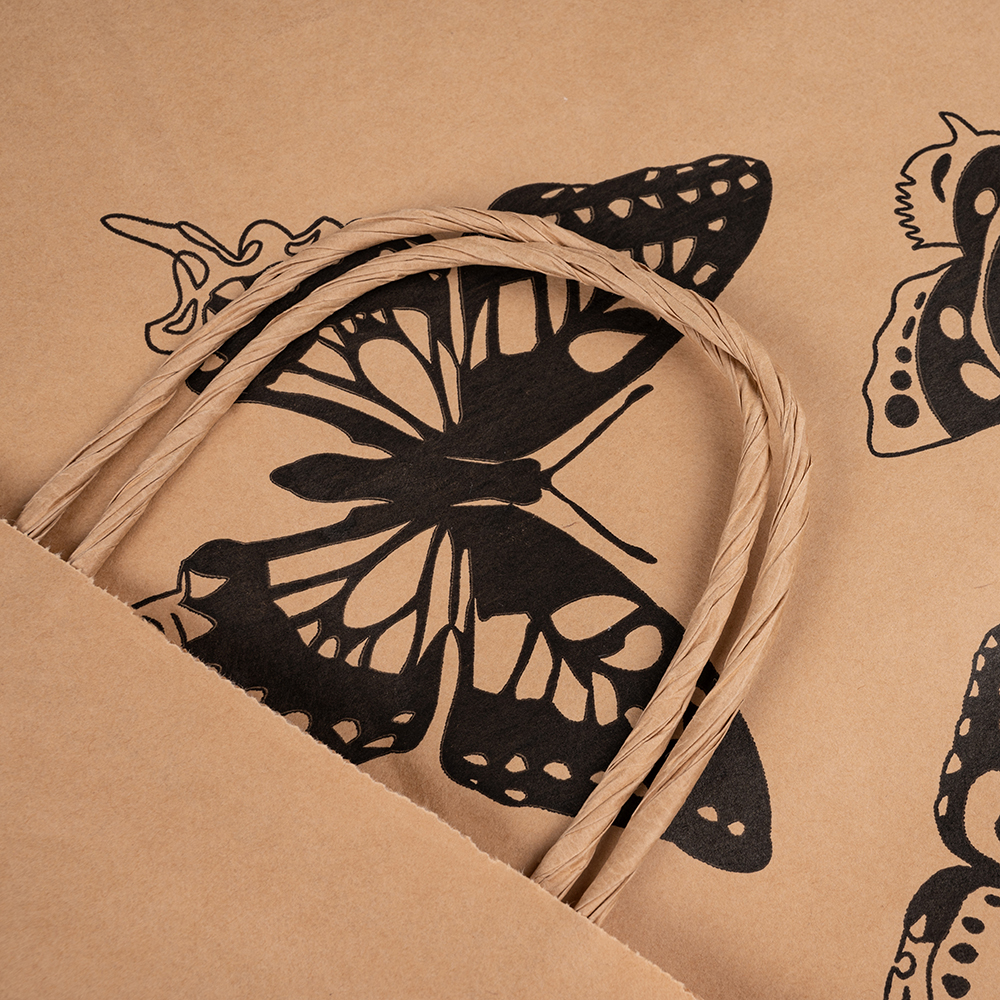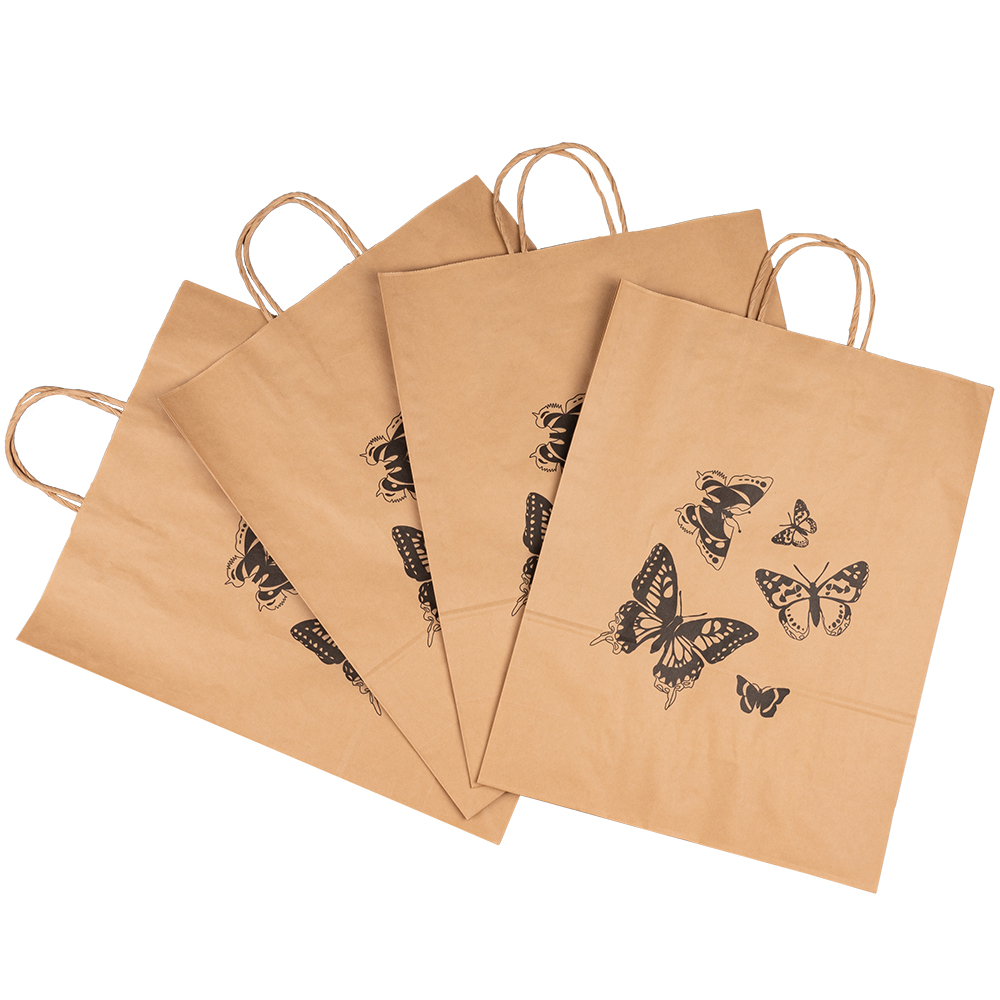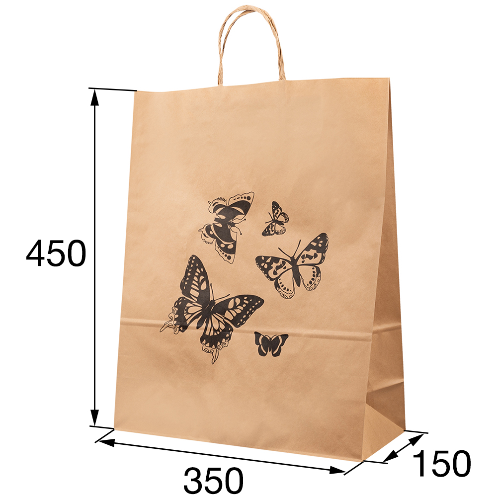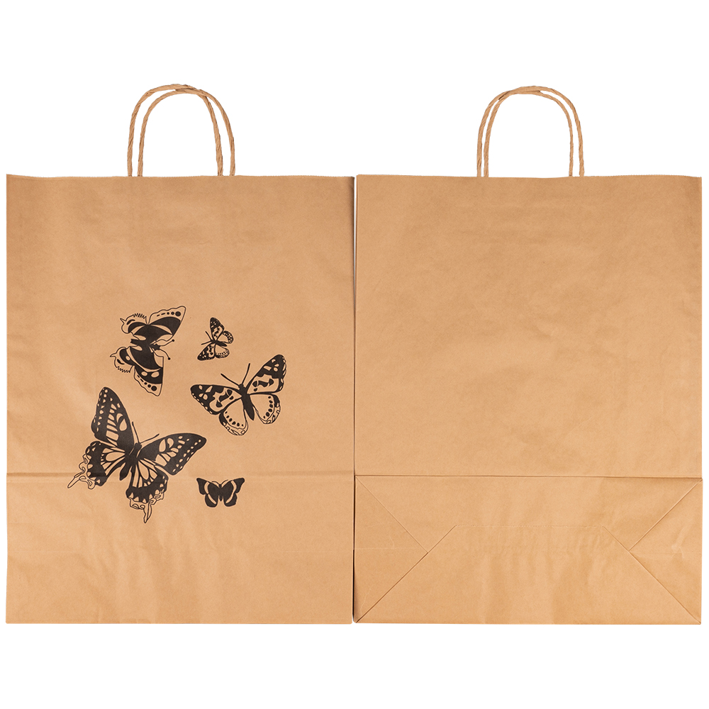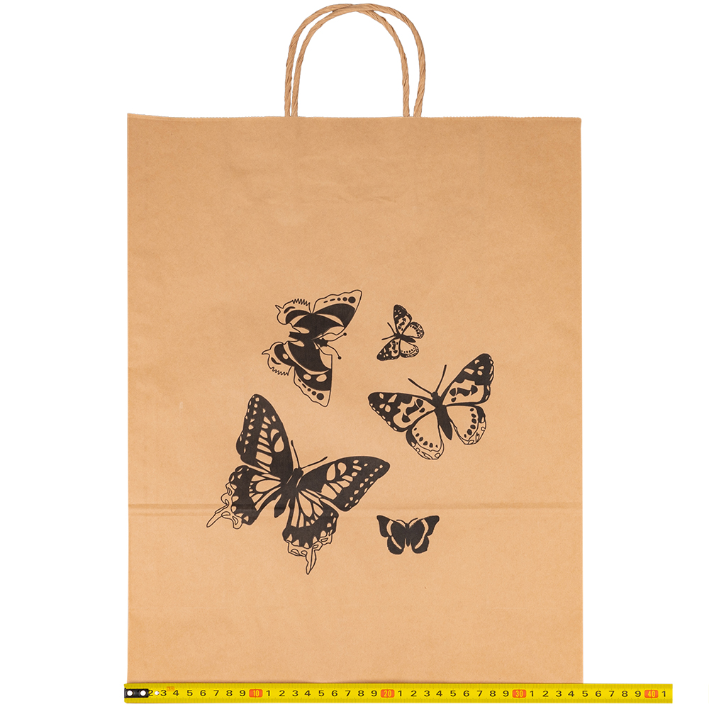 Крафт пакет с крученой ручкой «Бабочки», 80 г/м², 35*15*45 см