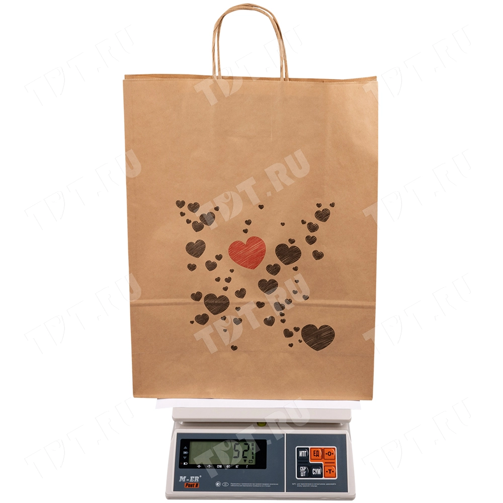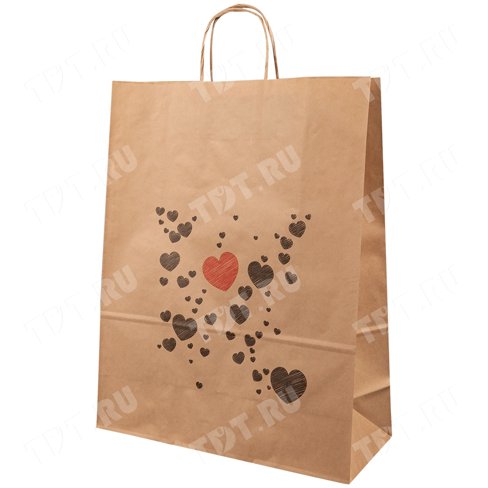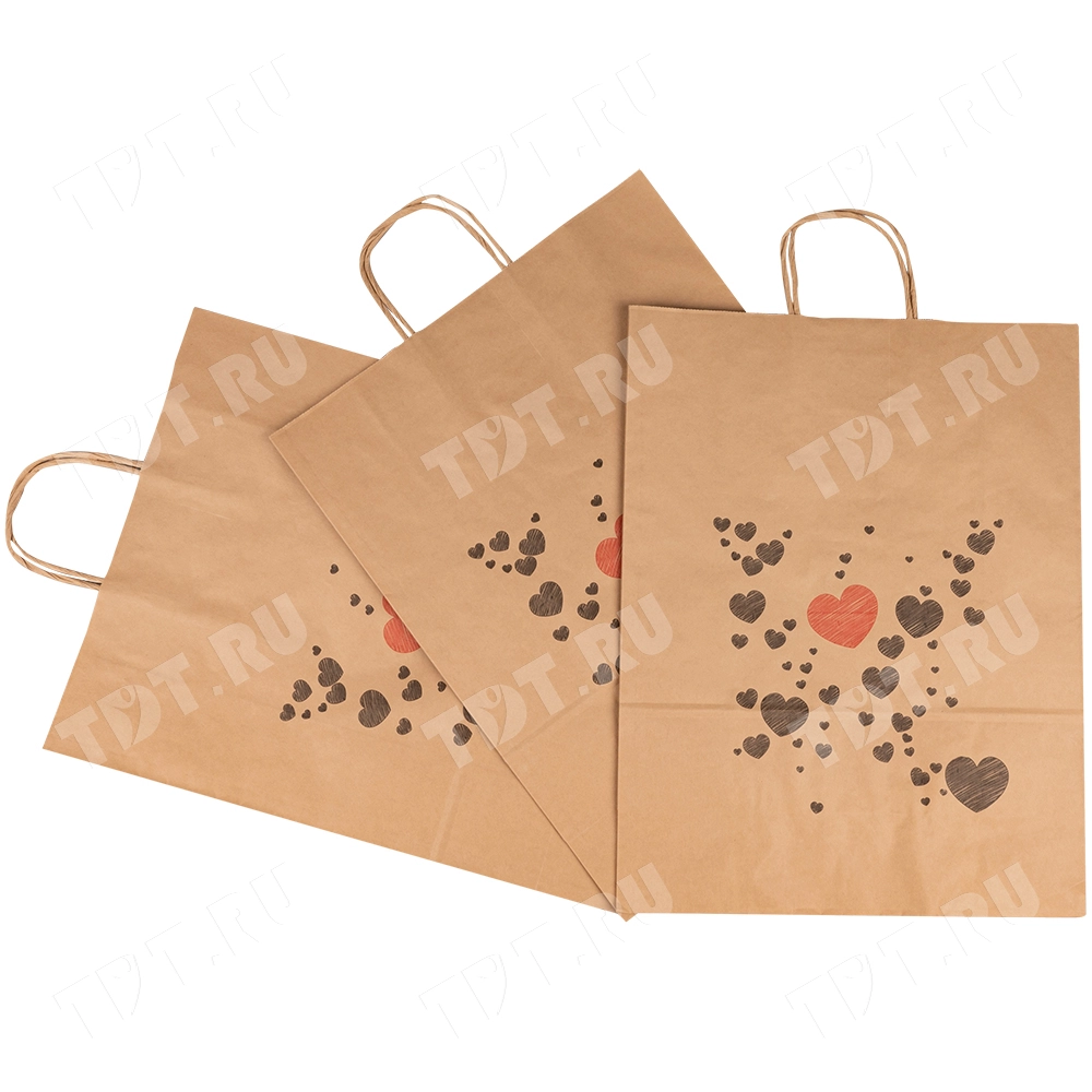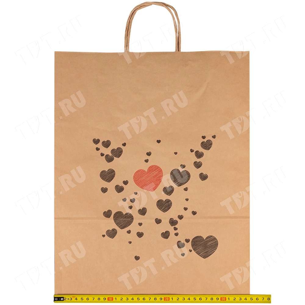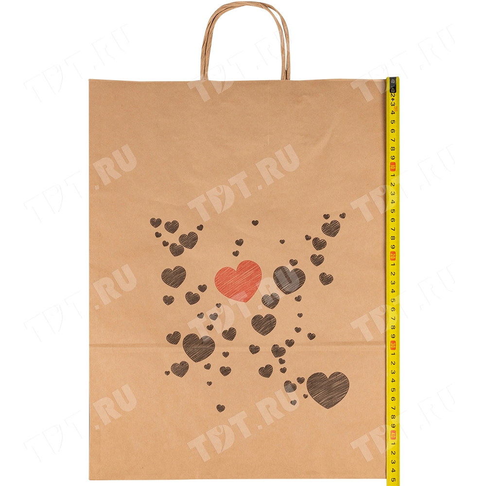 Крафт пакет с крученой ручкой «Сердечки», 80 г/м², 35*15*45 см