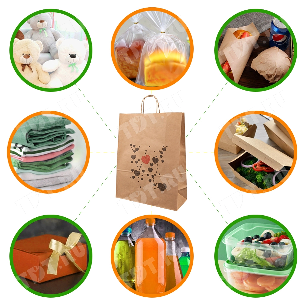 Пакеты с крученой ручкой используются для упаковки, переноски подарков.