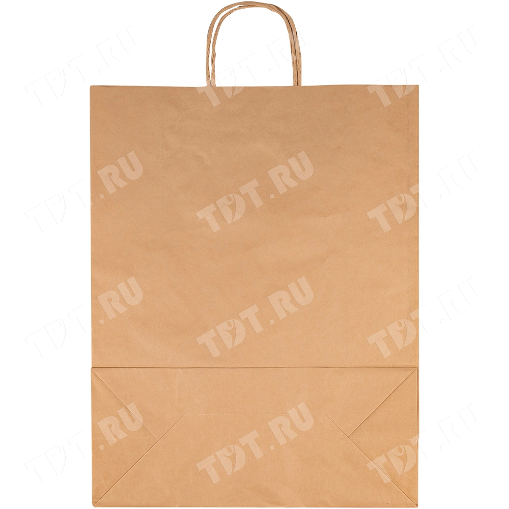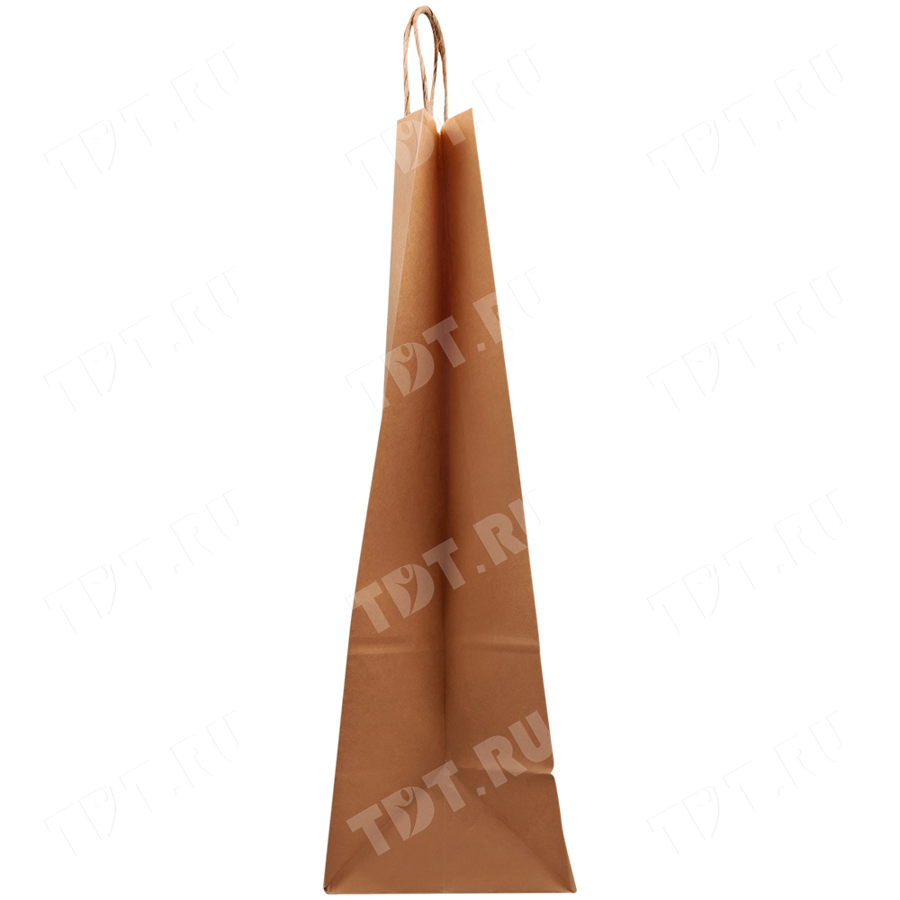 Ручки изготовлены в виде бумажного шпагата путем скручивания и надежным способом закреплены с внутренней стороны, что усиливает прочность, износостойкость и придает пакету эстетичный вид.