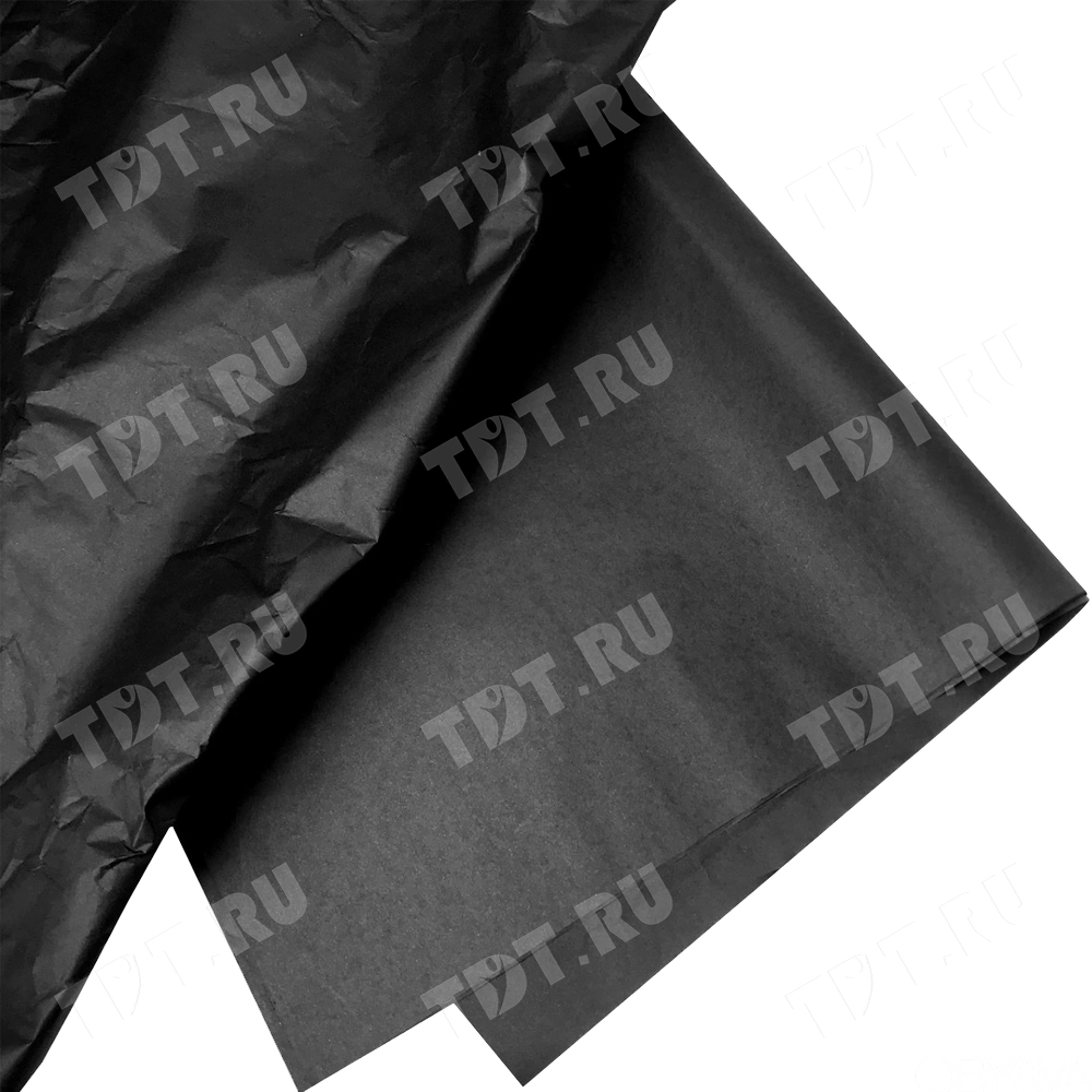 Черная бумага тишью шириной 50 см, длиной 66 см, плотностью 20 г/м² по 10 листов в упаковке. Шероховатая упаковочная бумага для оформления и украшения подарков.