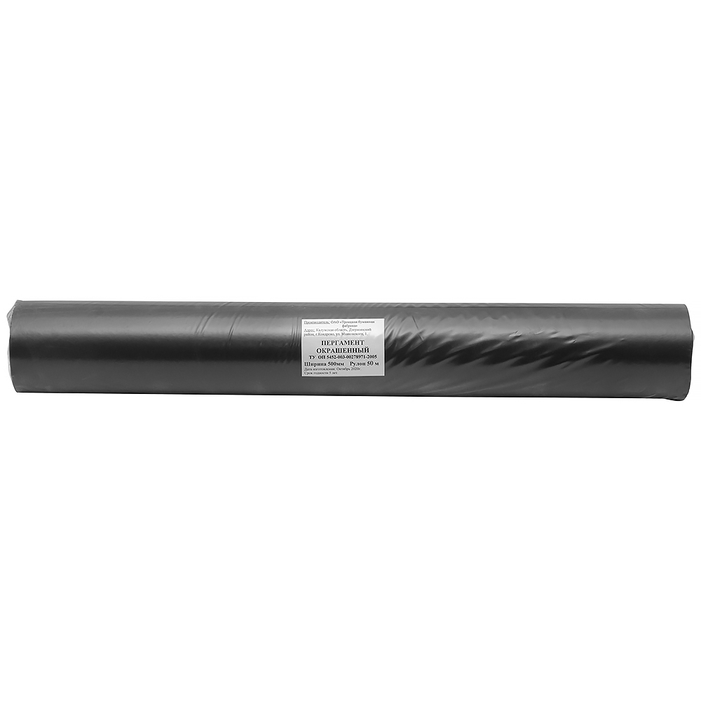 Пергамент в рулоне, черного цвета, шириной 50 см, намоткой 50 м, толщиной 50 мкм. Флористический пергамент изготовлен из натуральной целлюлозы и окрашен в насыщенный цвет. Прочный, не боится влаги. Производится в России.