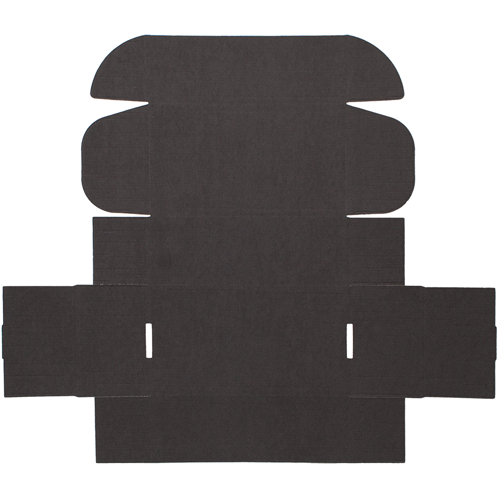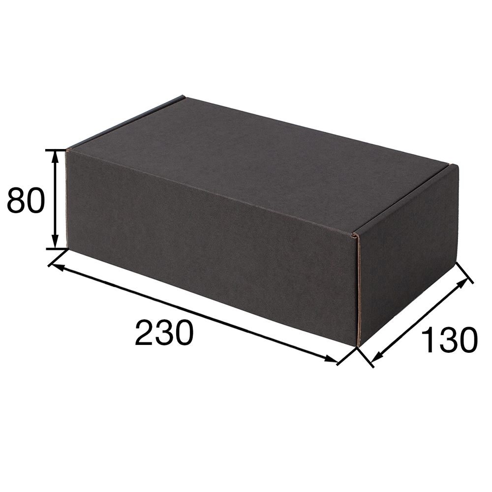 Короб КС-532 МГФ, серии КС-500, чёрный, длиной 230 мм, шириной 130 мм и высотой 80 мм. Изготовлен из картона марки Т-24 В. Полезный объём — 2.4 л.