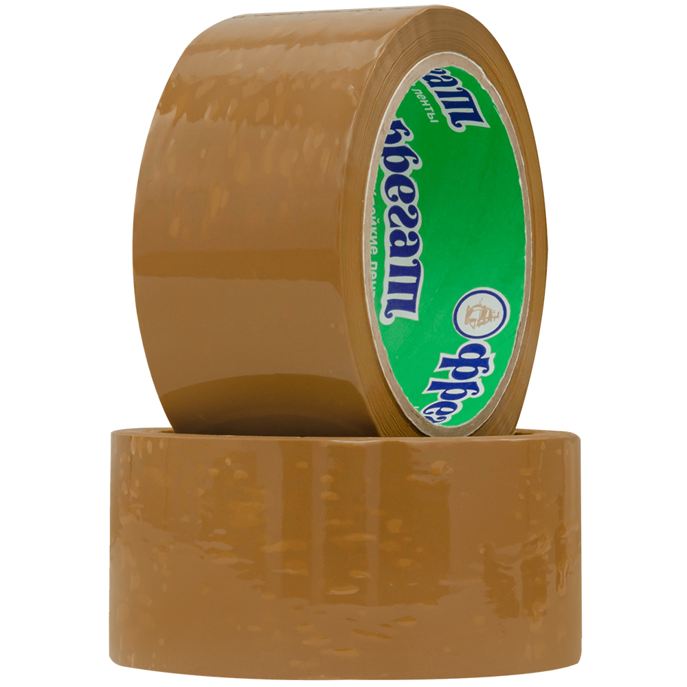 Коричневая клейкая лента Фрегат шириной 48 мм, диаметром втулки 76 мм, намоткой 66 метров для ручной упаковки. Изготовлена на основе полипропилена.