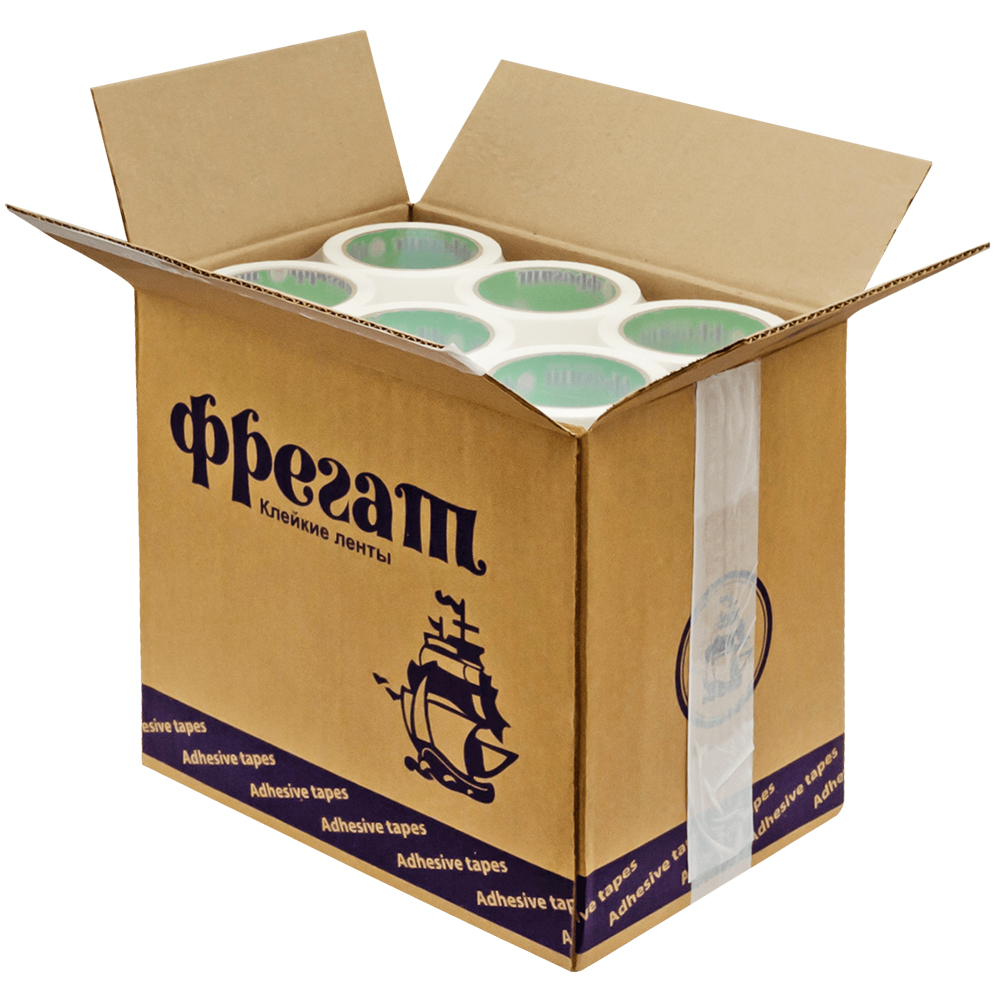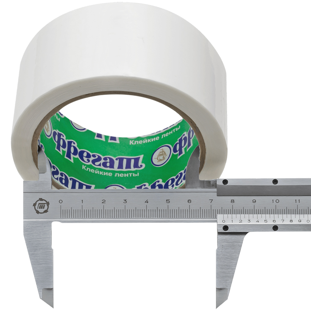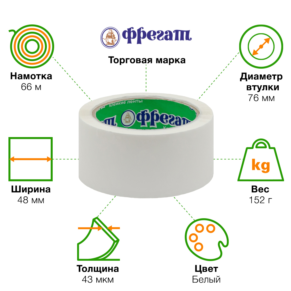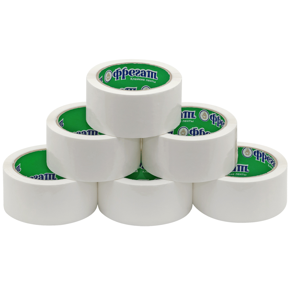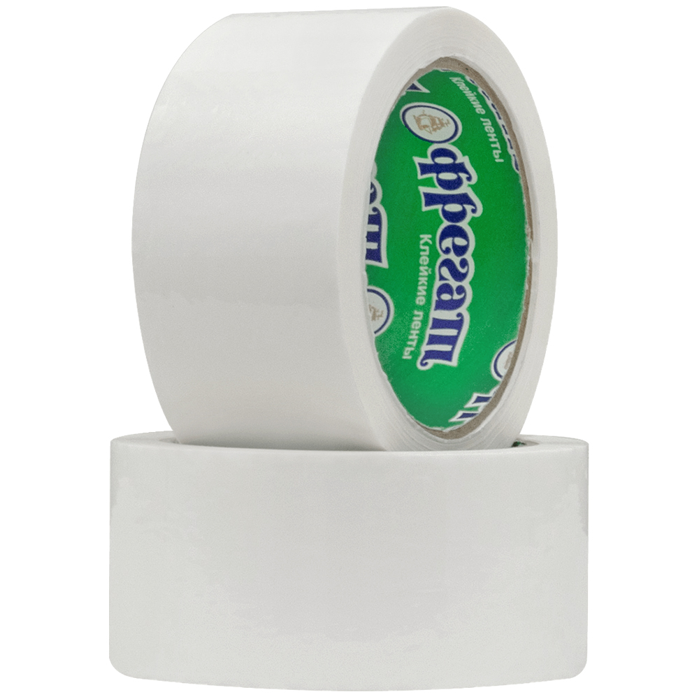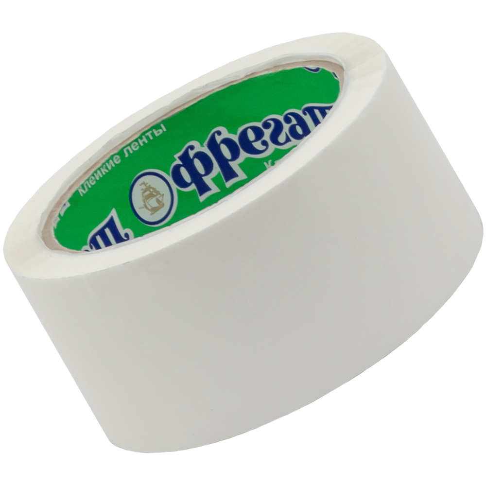 Белая клейкая лента Фрегат шириной 48 мм, диаметром втулки 76 мм, намоткой 66 метров. Изготовлена на основе полипропилена.