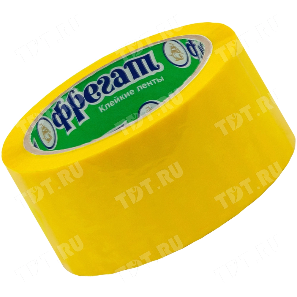 Желтая клейкая лента Фрегат шириной 48 мм, диаметром втулки 76 мм, намоткой 66 метров. Изготовлена на основе полипропилена.