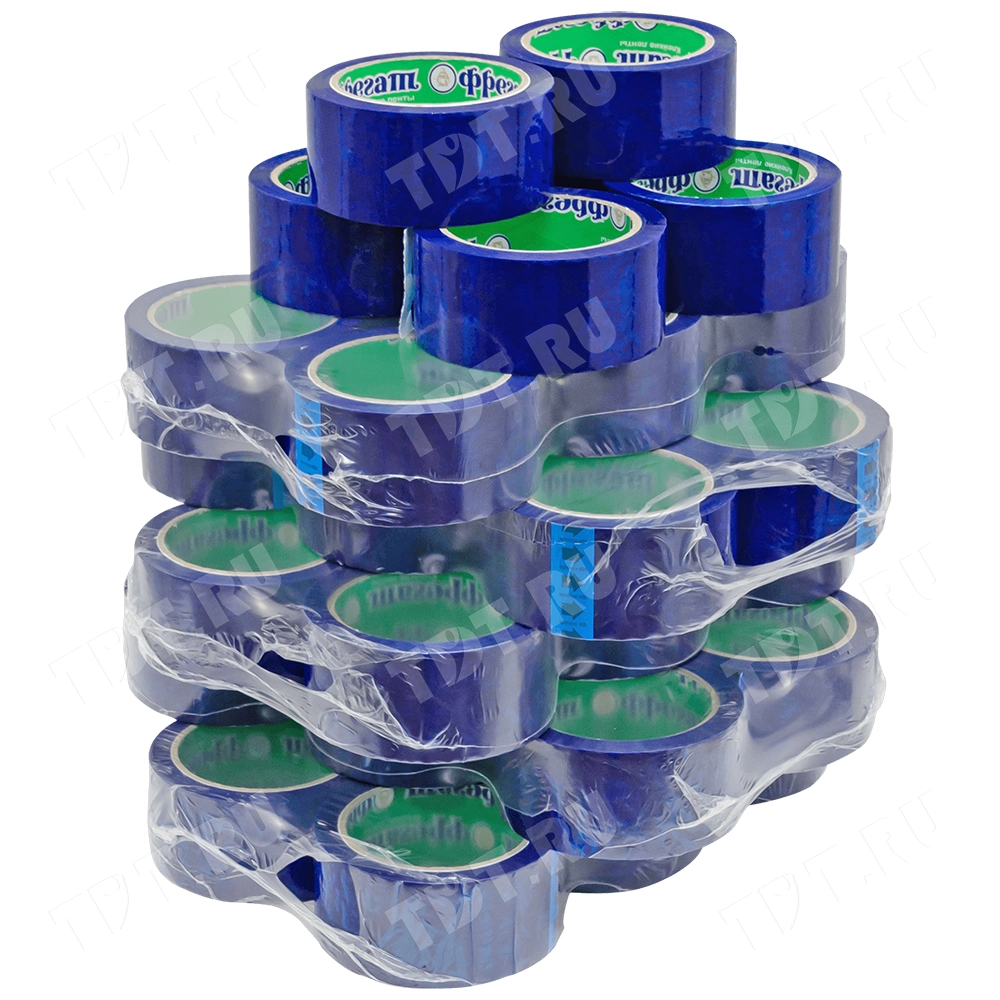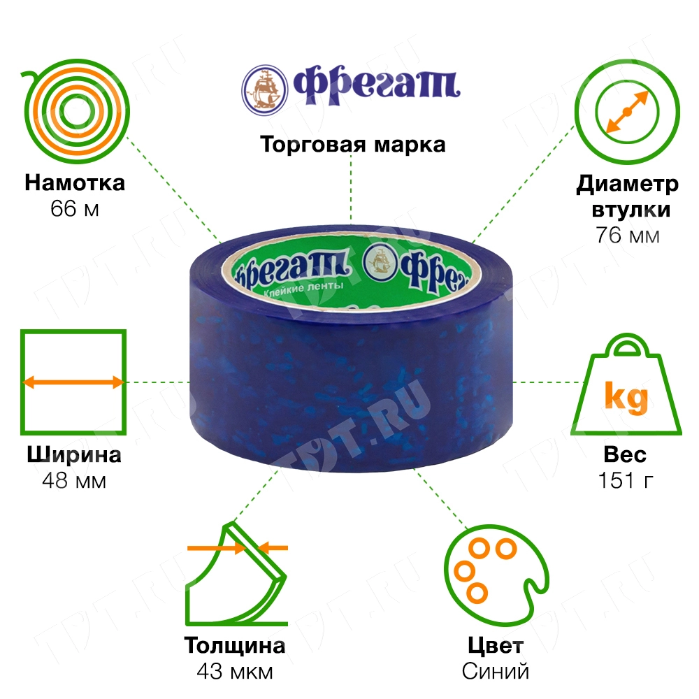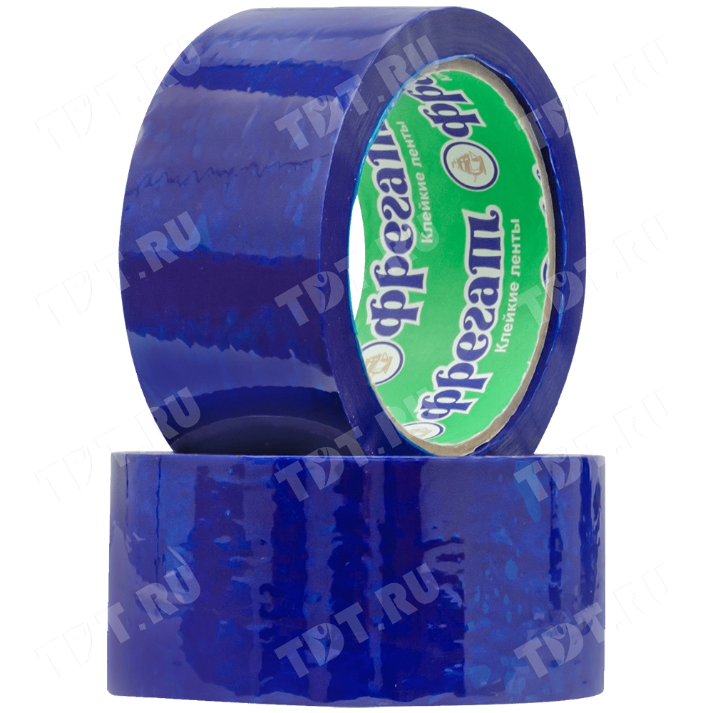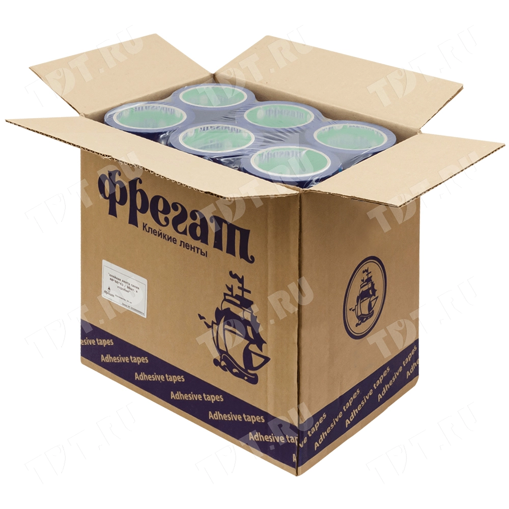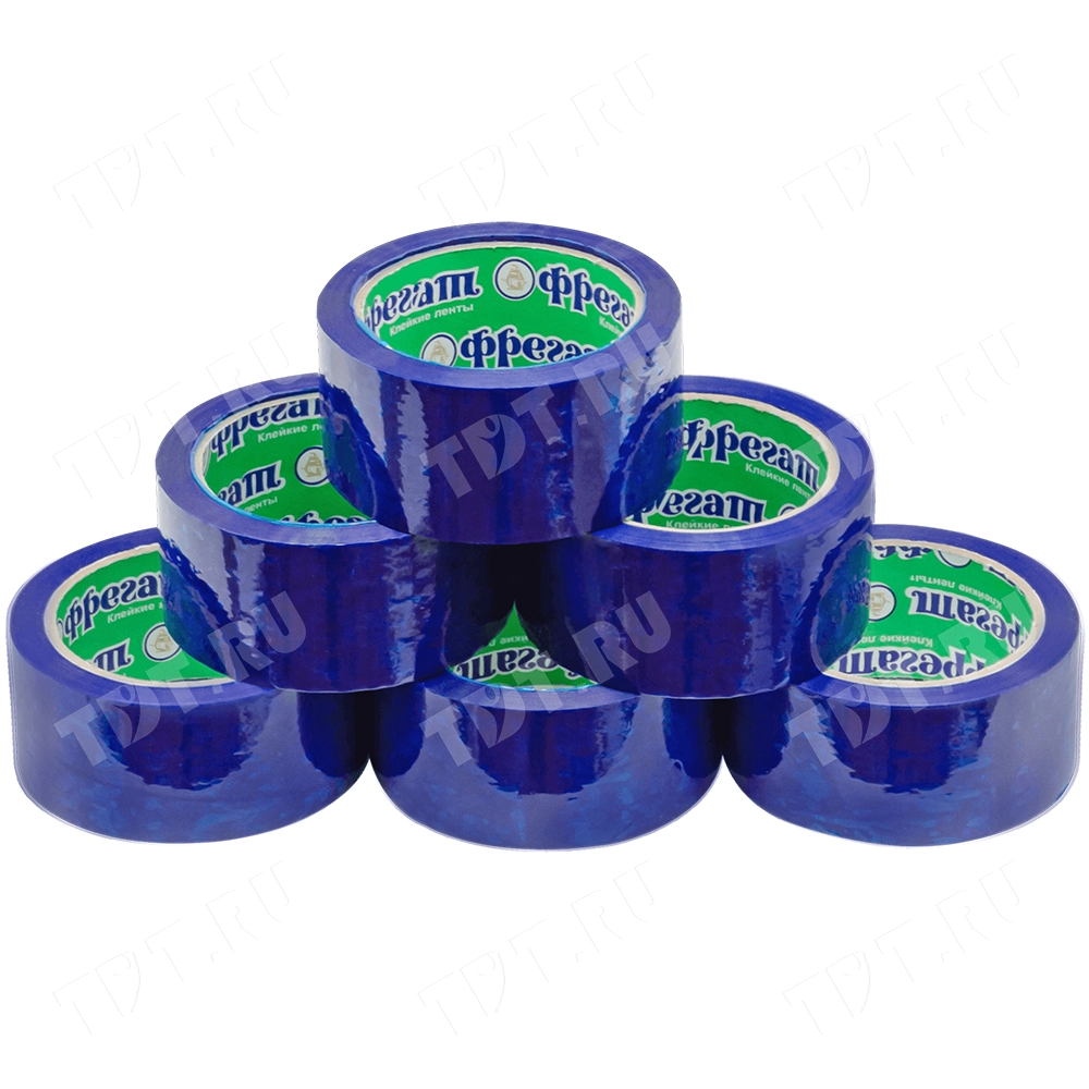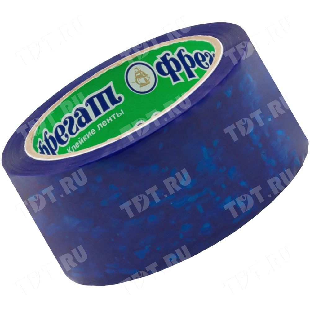 Синяя клейкая лента Фрегат шириной 48 мм, диаметром втулки 76 мм, намоткой 66 метров. Изготовлена на основе полипропилена.