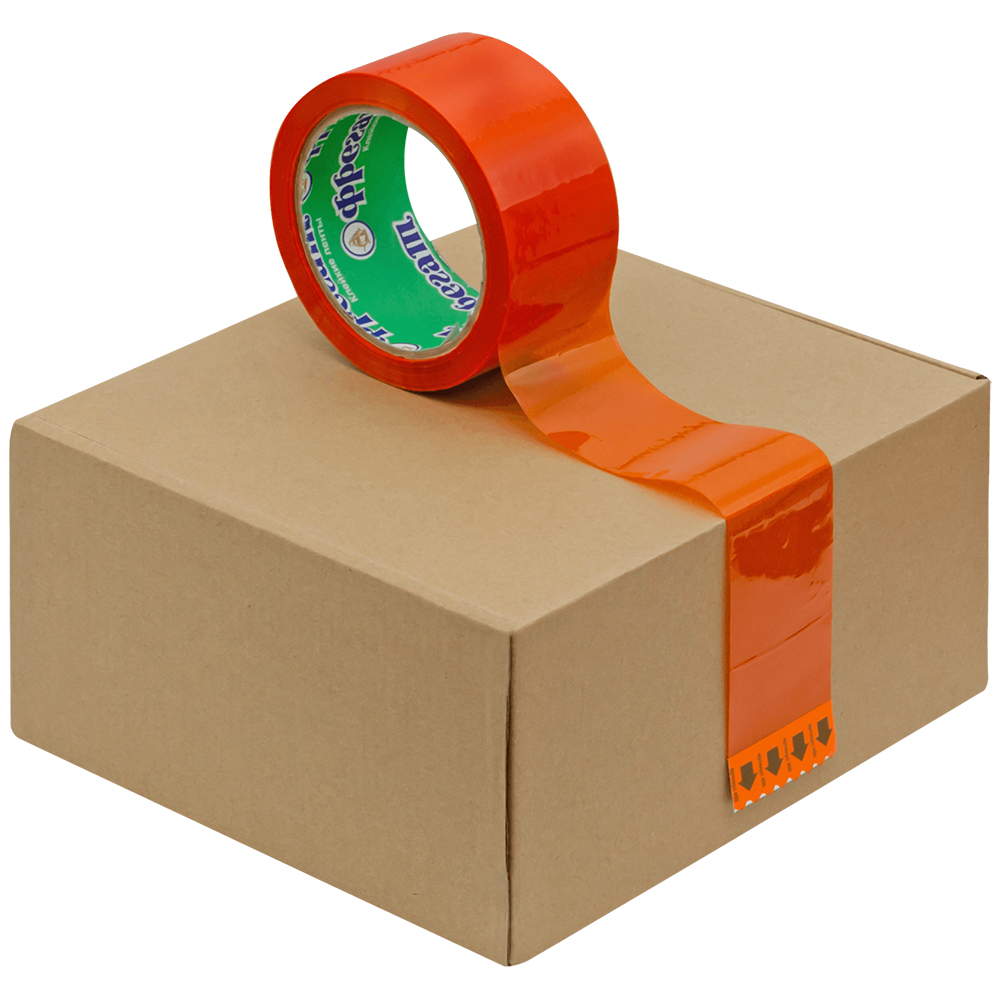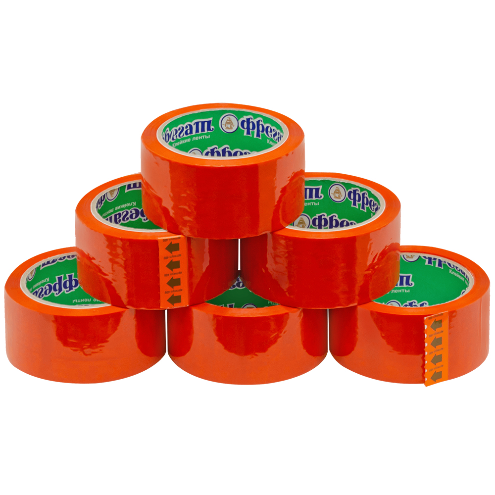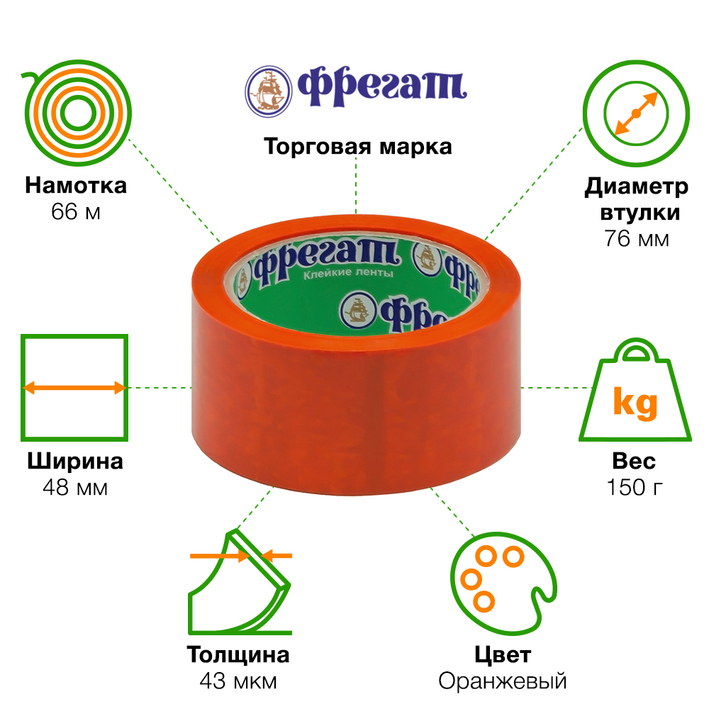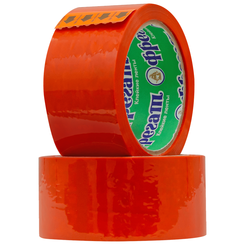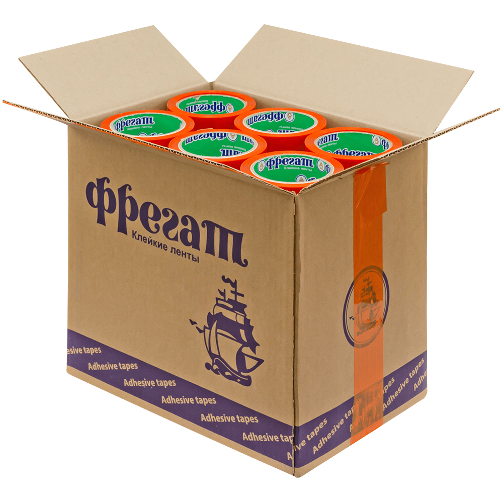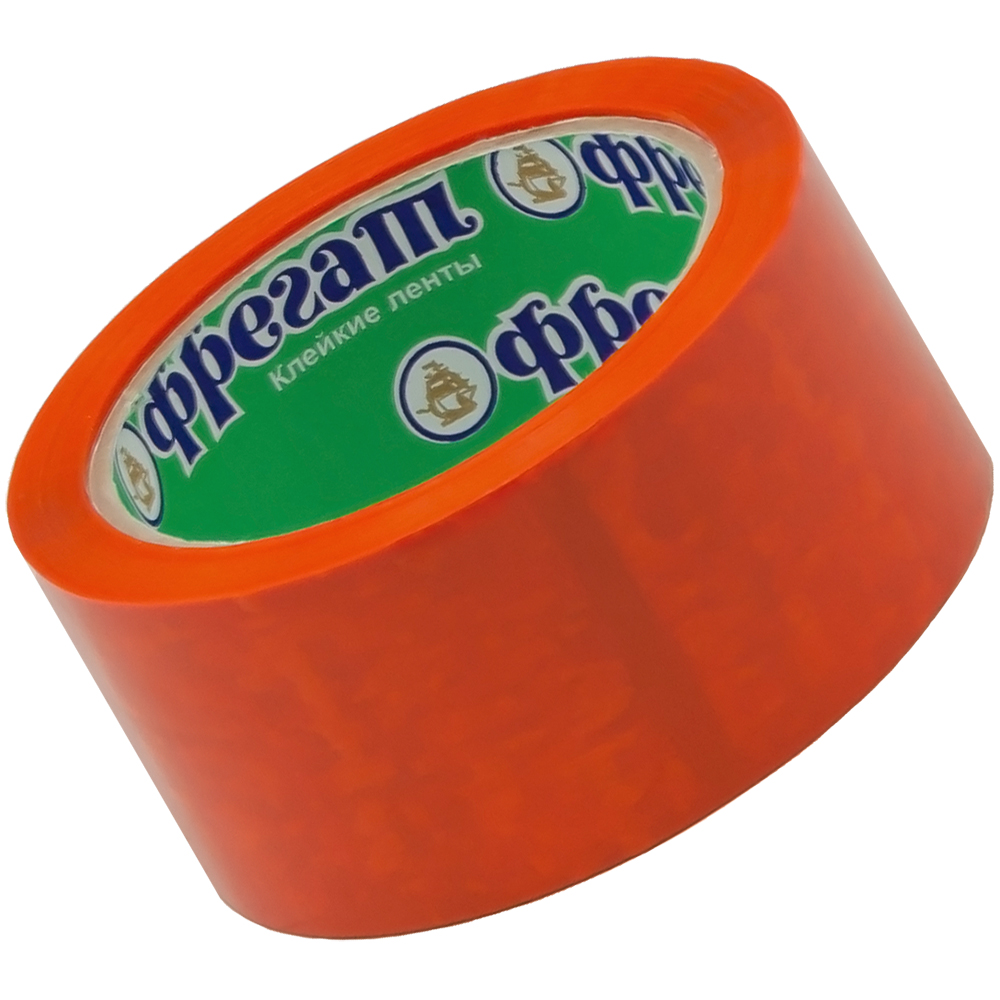 Оранжевая клейкая лента Фрегат шириной 48 мм, диаметром втулки 76 мм, намоткой 66 метров. Изготовлена на основе полипропилена.