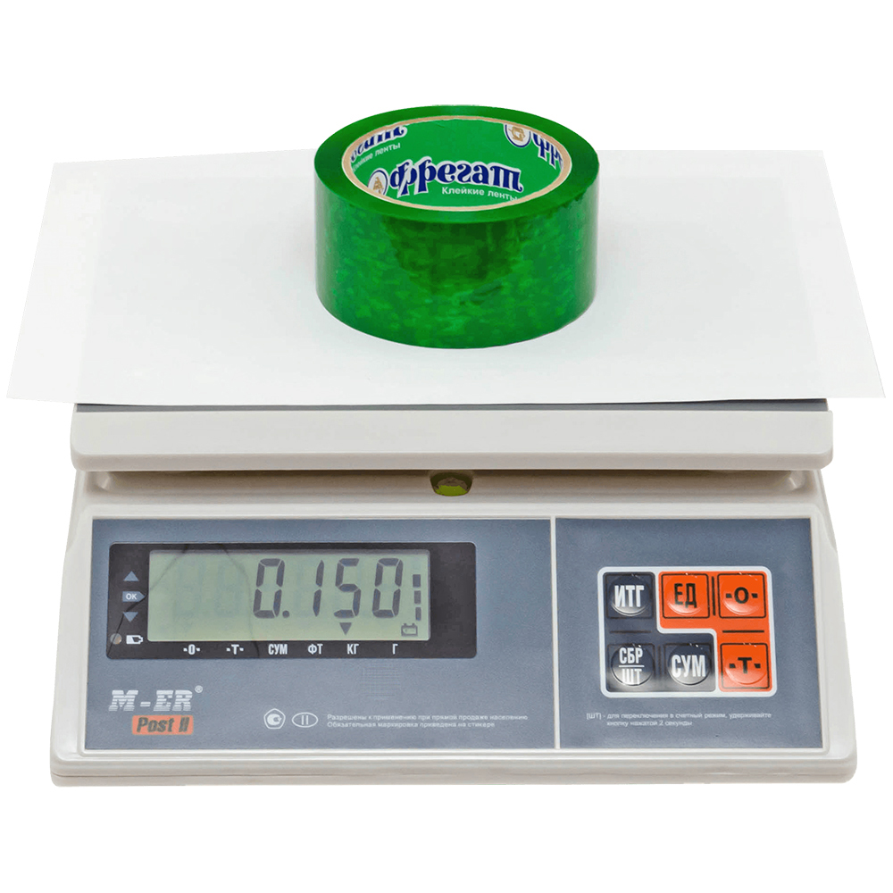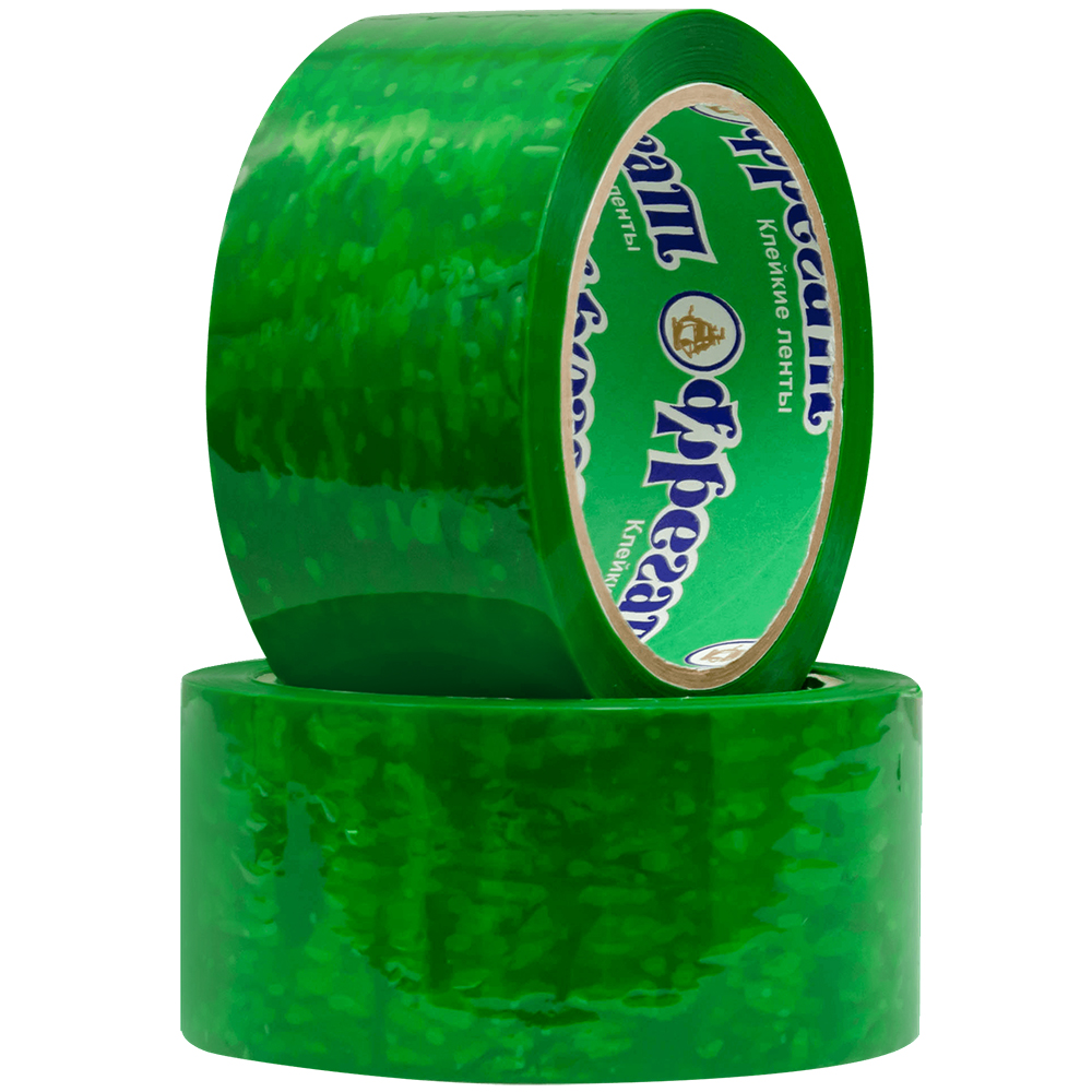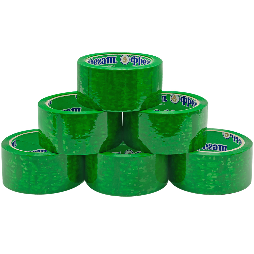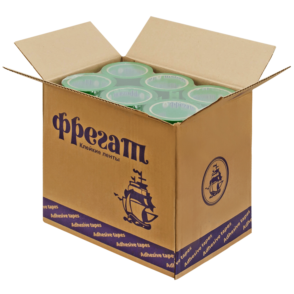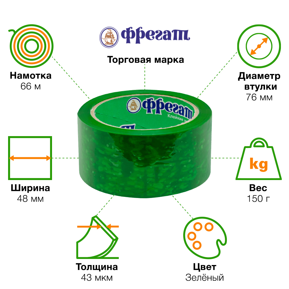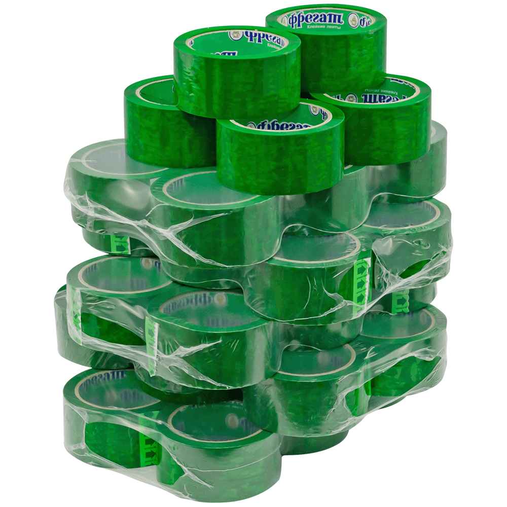 Зеленая клейкая лента Фрегат шириной 48 мм, диаметром втулки 76 мм, намоткой 66 метров. Изготовлена на основе полипропилена.