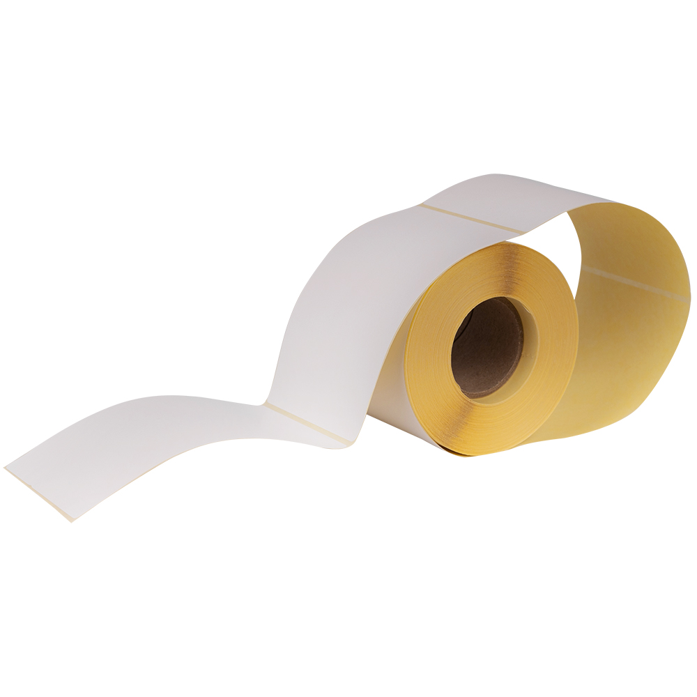 Самоклеящиеся этикетки ЭКО из матовой бумаги белого цвета, шириной 75 мм, высотой 120 мм, диаметром втулки 40 мм, количеством в рулоне по 250 штук. Производятся в России. Термоэтикетки ЭКО в рулонах предназначены для печати на принтерах без риббона. На этикетках есть специальный слой, который при нагреве термоголовки принтера темнеет, за счет этого происходит печать.