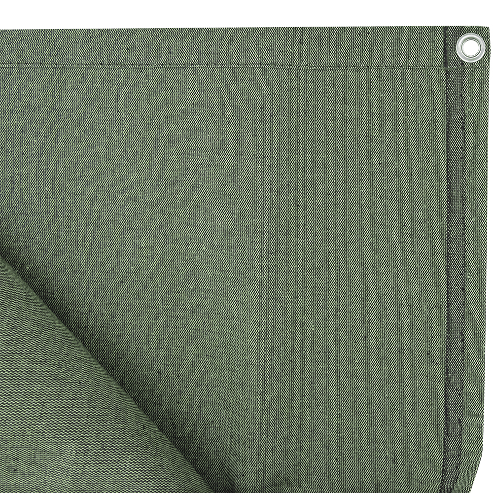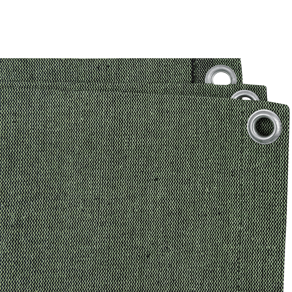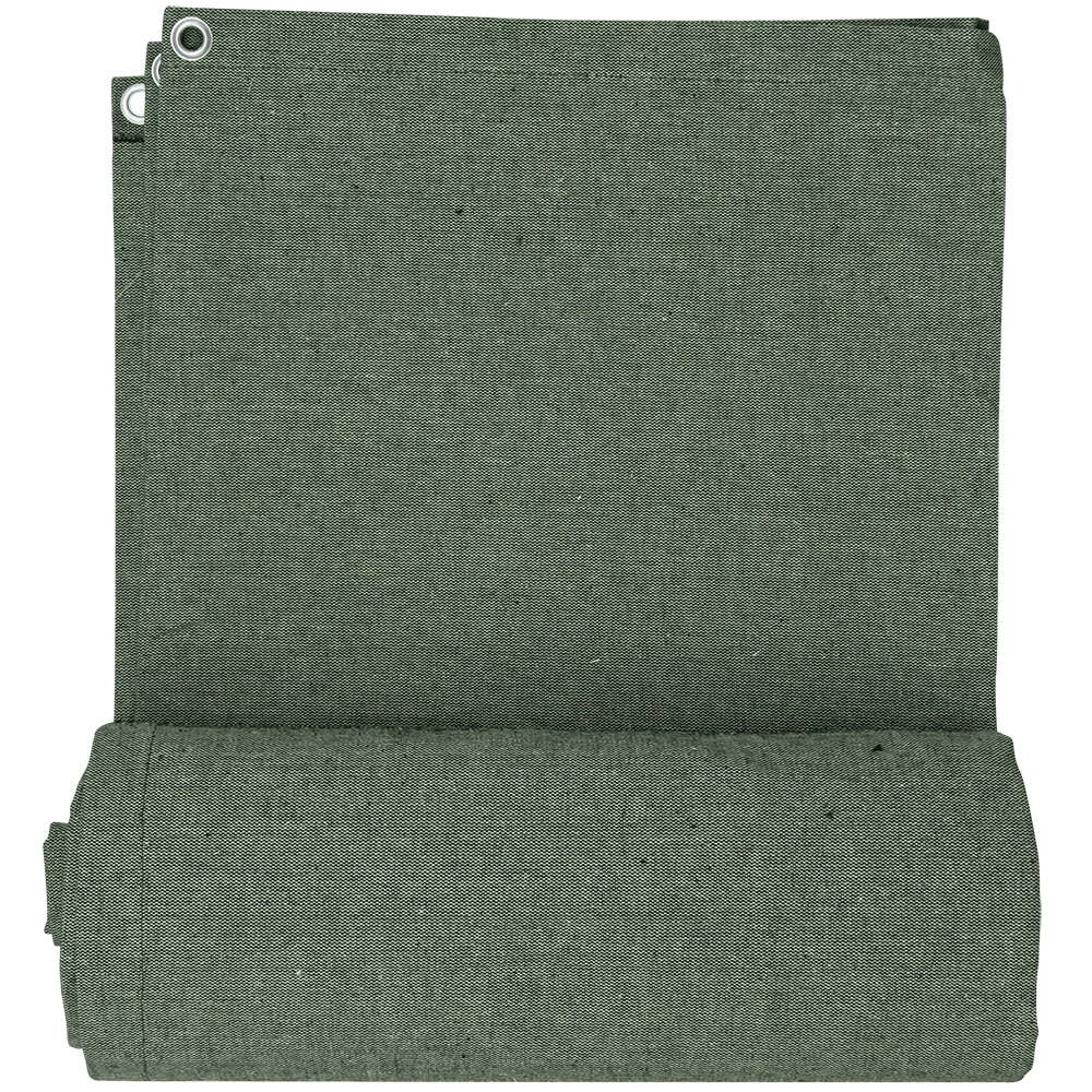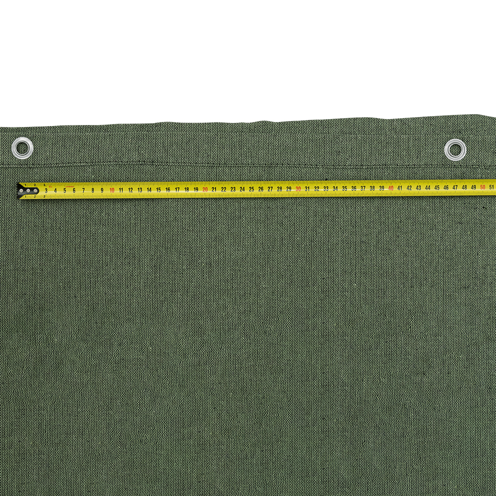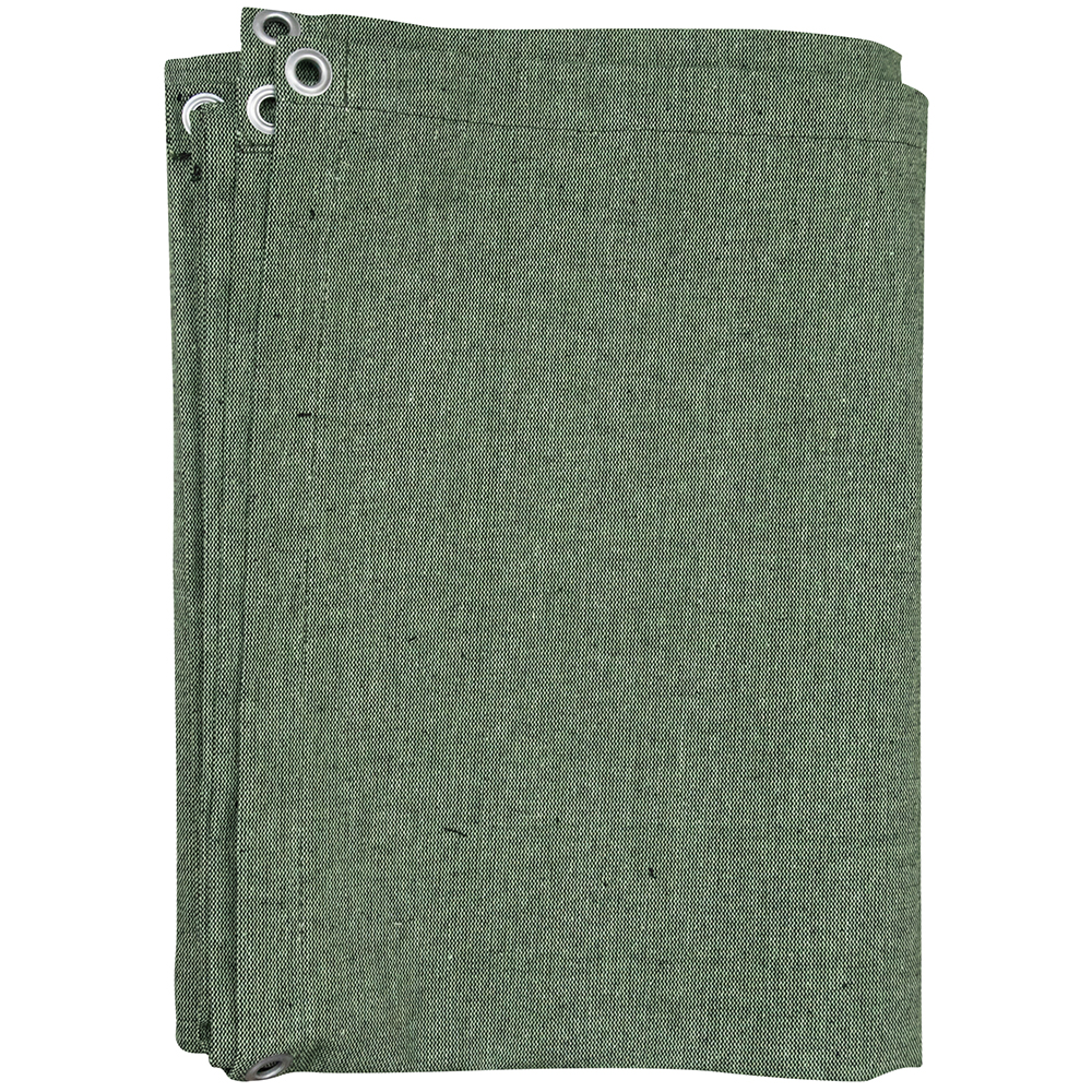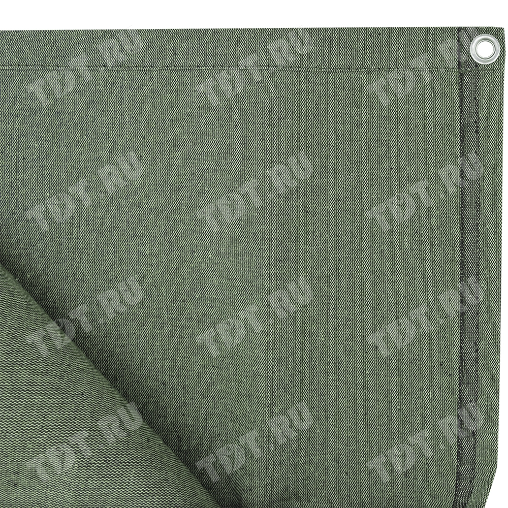 Огнеупорный брезент с люверсами Rendell, цвета хаки, длиной 5 м, шириной 3 м, площадью 15 м², плотностью 400 г/м², расстоянием между люверсами 50 см, весом 6 кг. Материал – хлопок, лен и огнеупорная пропитка (ОП). Производится в России.