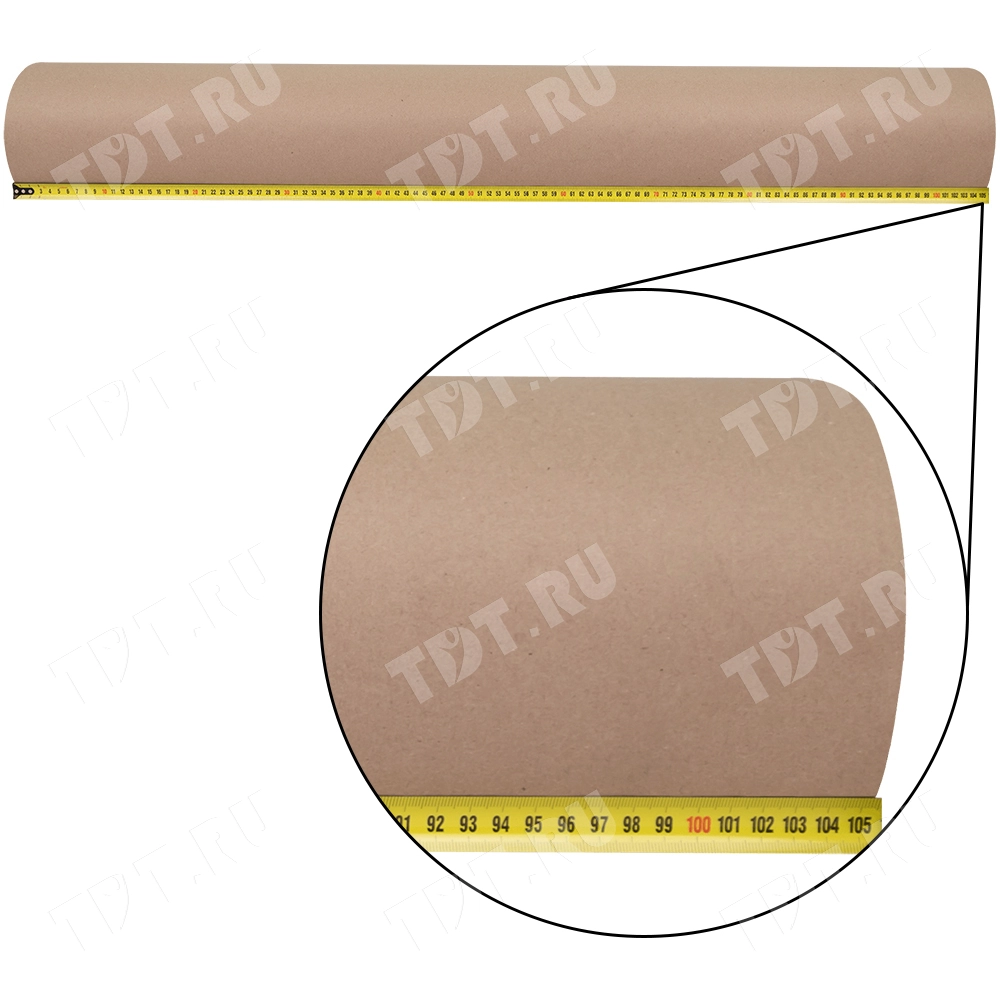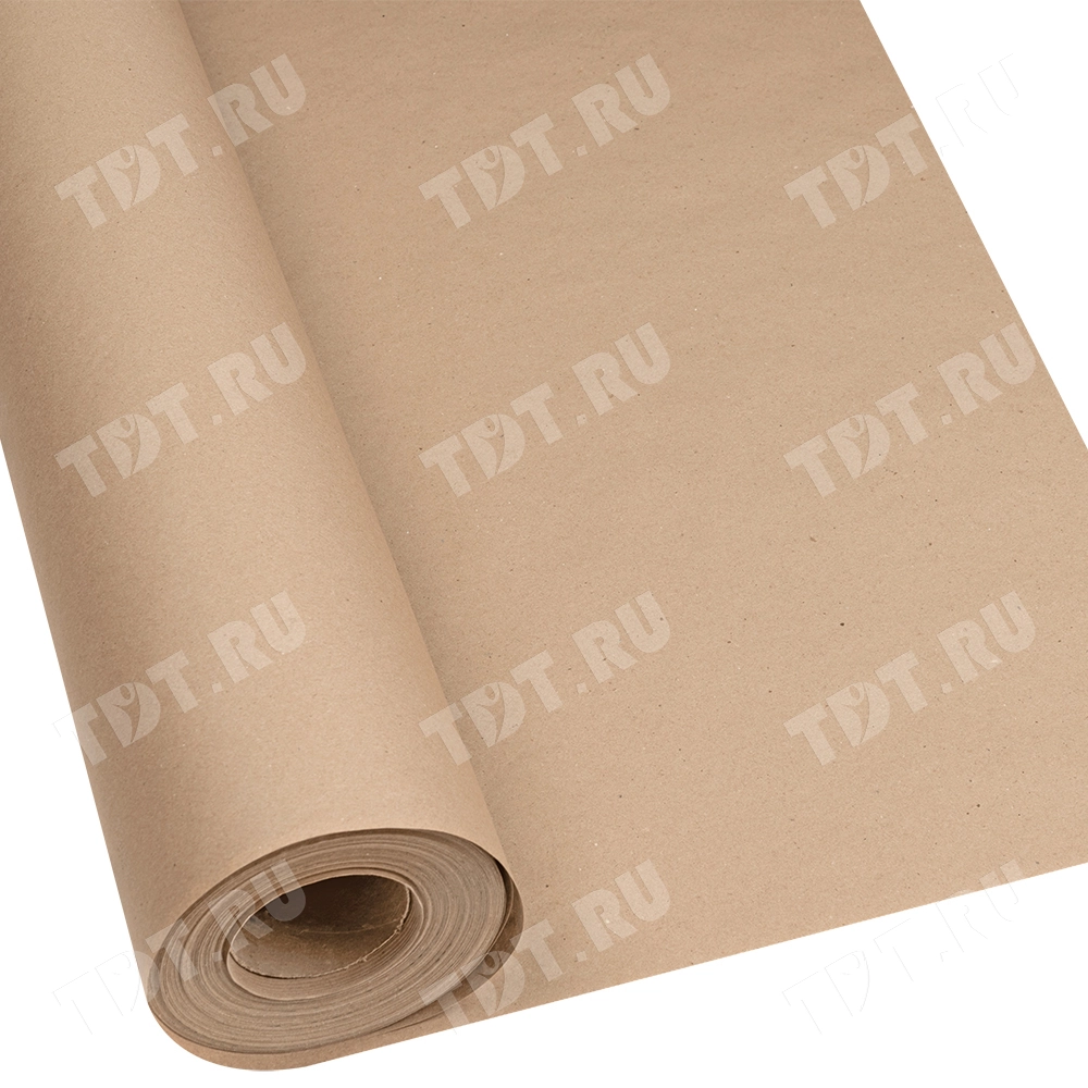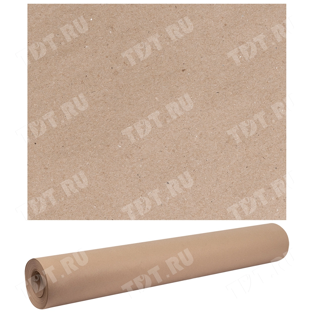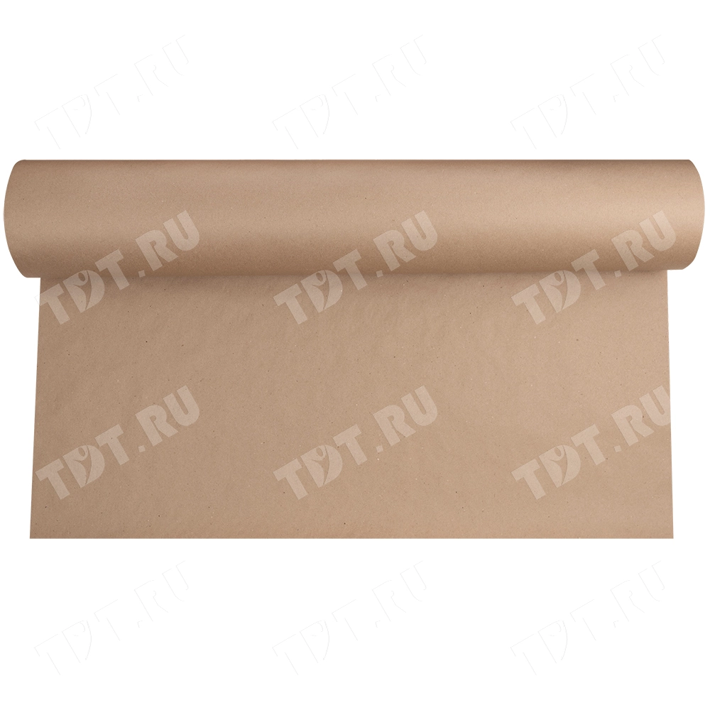 Оберточная крафт бумага в рулоне бурого цвета, шириной 105 см, намоткой 90 м, плотностью 90 г/м². Экологически чистый упаковочный материал из вторсырья. Производится в России.