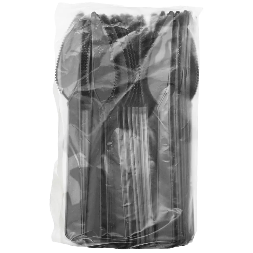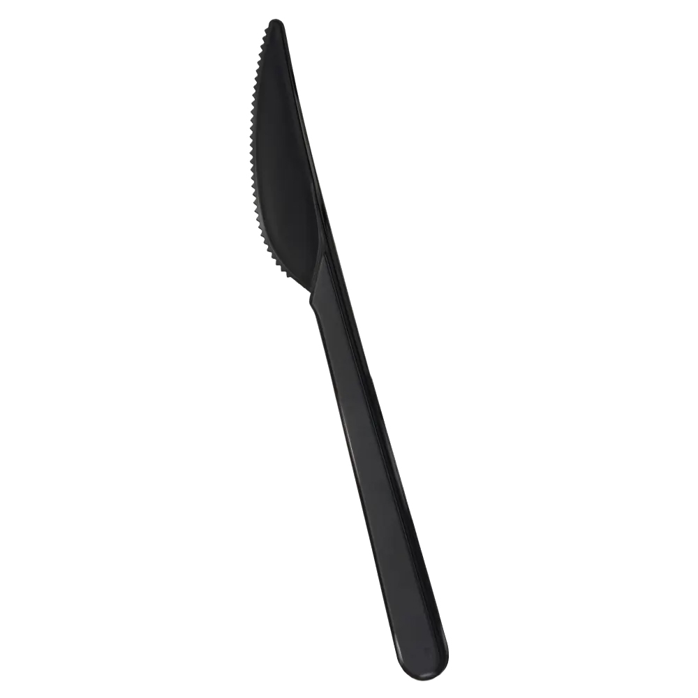 Одноразовые пластиковые ножи Премиум с зубчиками, черного цвета, длиной 180 мм, в упаковке по 50 шт. Материал – пищевой полистирол.