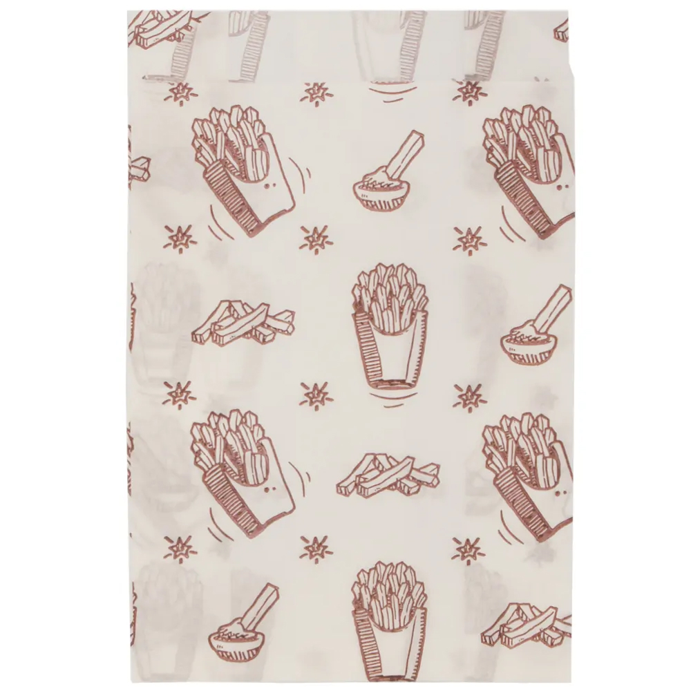 Крафт пакет под картошку фри, белый с рисунком, 175*110+50 мм, 100 шт.