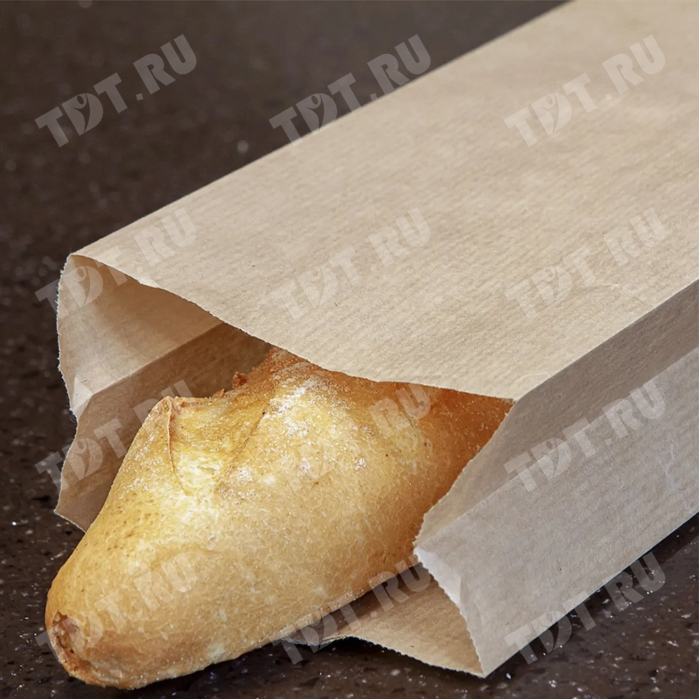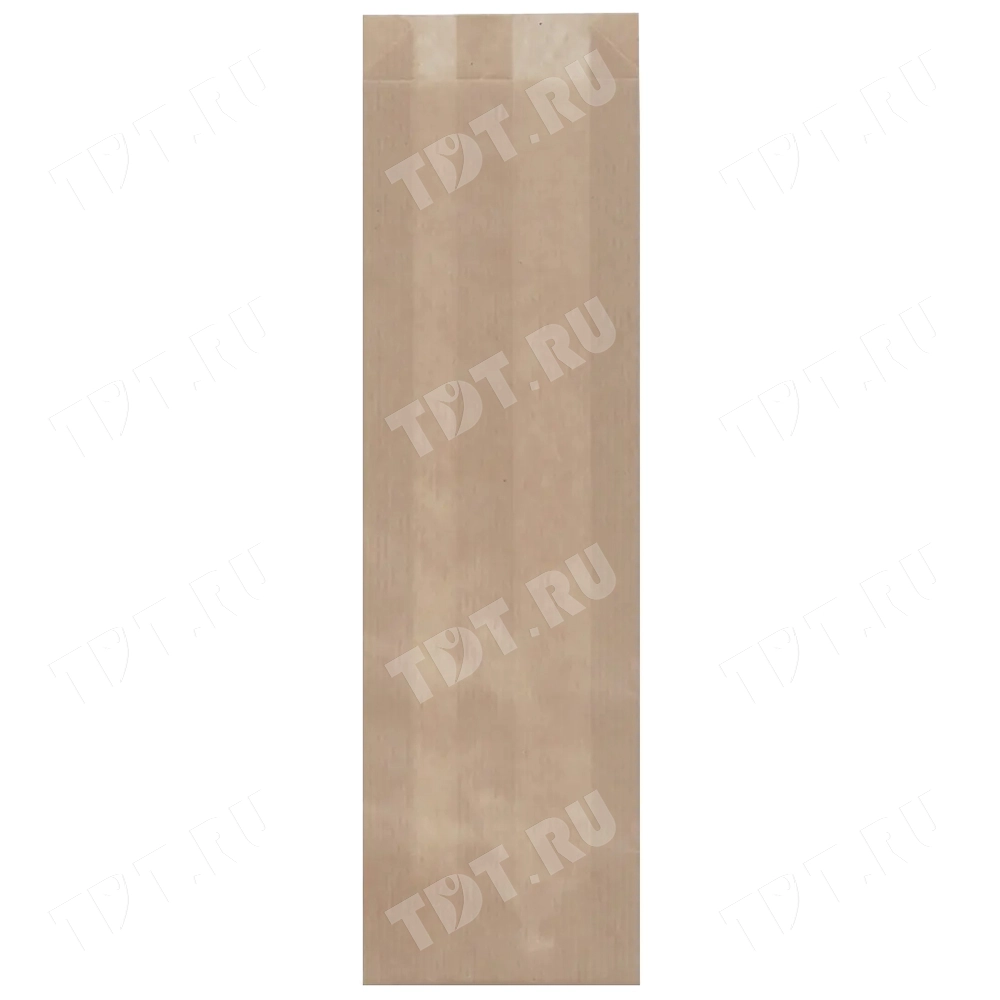 Бумажные крафт пакеты под мини-багеты или пивные бутылки, без рисунков, без ручек, коричневого цвета, высотой 300 мм, шириной 40 мм, плотностью 40 г/м², в упаковке по 100 штук. Материал – бумага. Производятся в России.