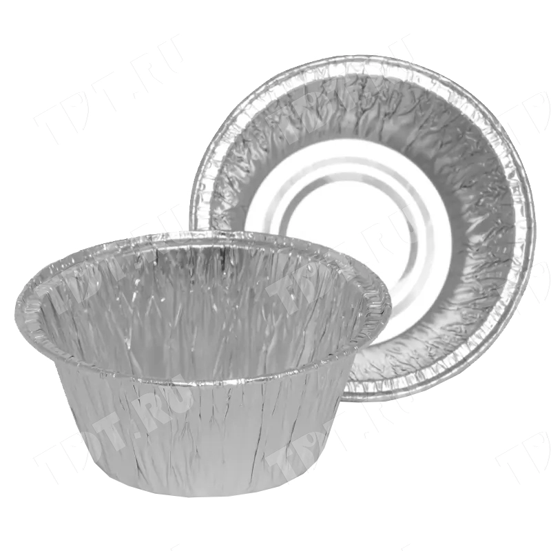Одноразовые алюминиевые формы круглые, объемом 0.13 л, диаметром 8.6 см, высотой 3.5 см, в упаковке по 100 штук. Материал – алюминий. Производятся в России.