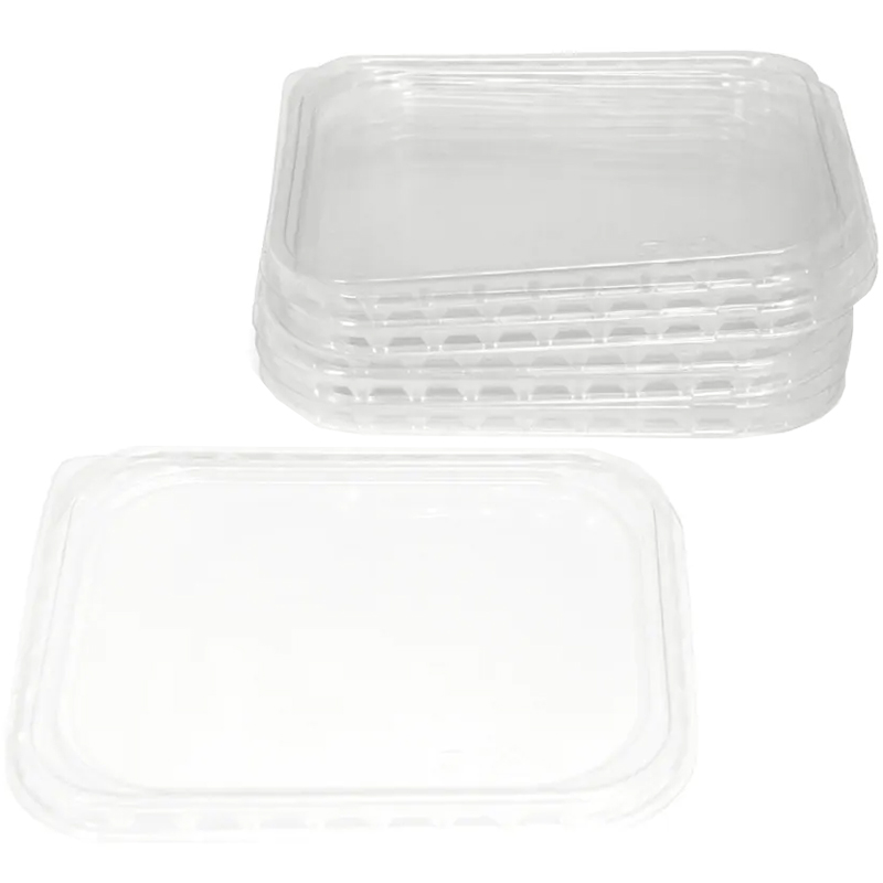 Одноразовые пластиковые крышки для прямоугольной алюминиевой формы 9603699, длиной 12.5 см, шириной 10 см, в упаковке по 200 штук. Материал – ПЭТ. Производятся в России.