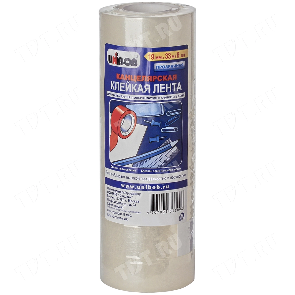 Клейкая лента канцелярская Unibob®, 19мм*33м, 8 шт./уп.